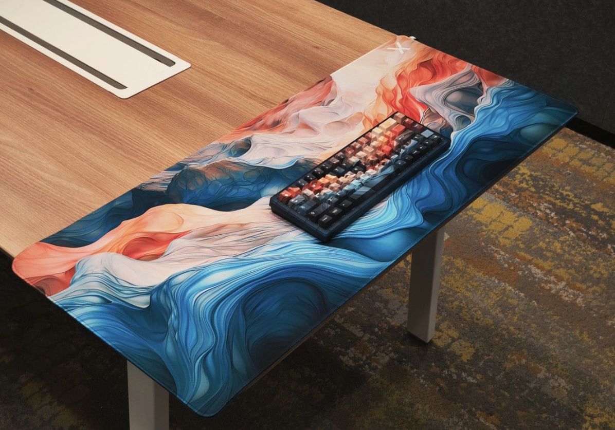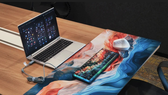 打开包装纸之后,可以看到一张大尺寸的色彩洪流桌垫,有撞色与流动的美感,随手拍都是桌面壁纸。