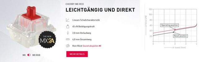 MX2A 樱桃 Cherry 红轴,顺滑无簧音,稳定长寿命