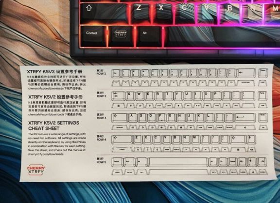 这把 K5V2 使用无需下载软件和驱动,可以直接通过 Fn 层组合键来使用大量的功能,并且能支持硬件宏,对于一些游戏玩家来说会有帮助。
