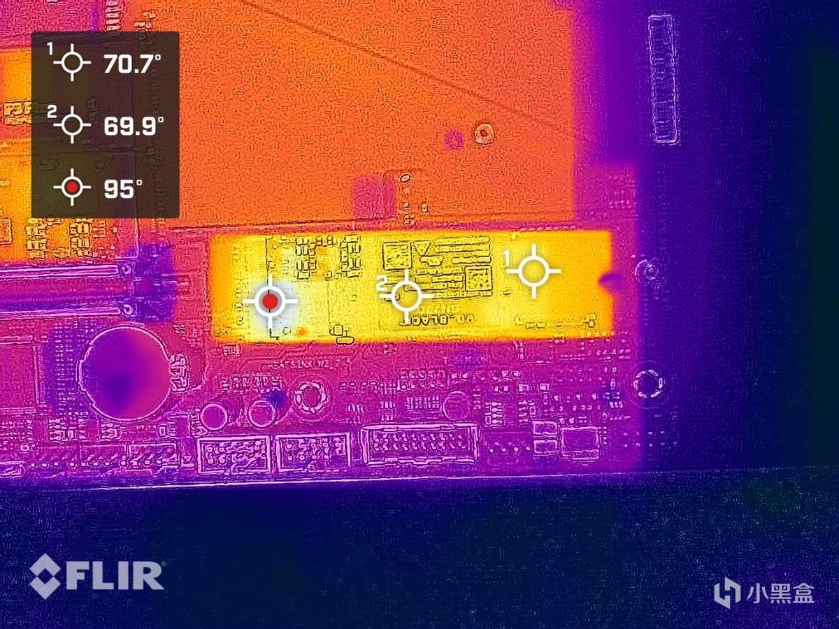 WD_BLACK SN770的SanDisk 20-82-10081主控温度最高,来到了95℃颗粒温度70.1℃。