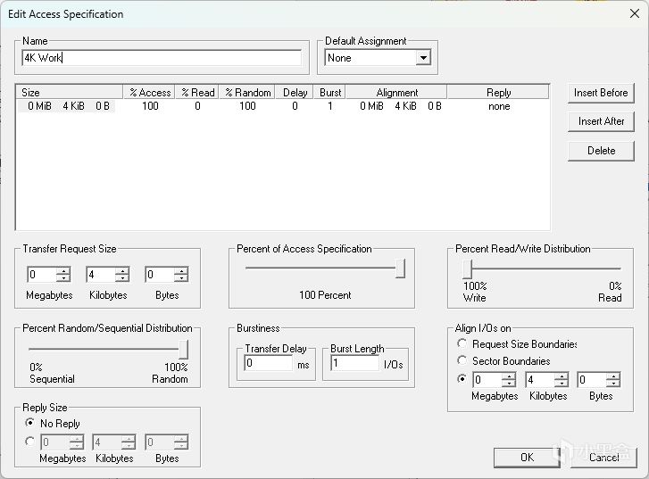 在设置中我们将Transfer Request Size设置成4KB,并设置成100%随机写入环境,与此同时在Write IO Data Pattern中改成不做压缩的Pseudo random,连续运行30分钟。