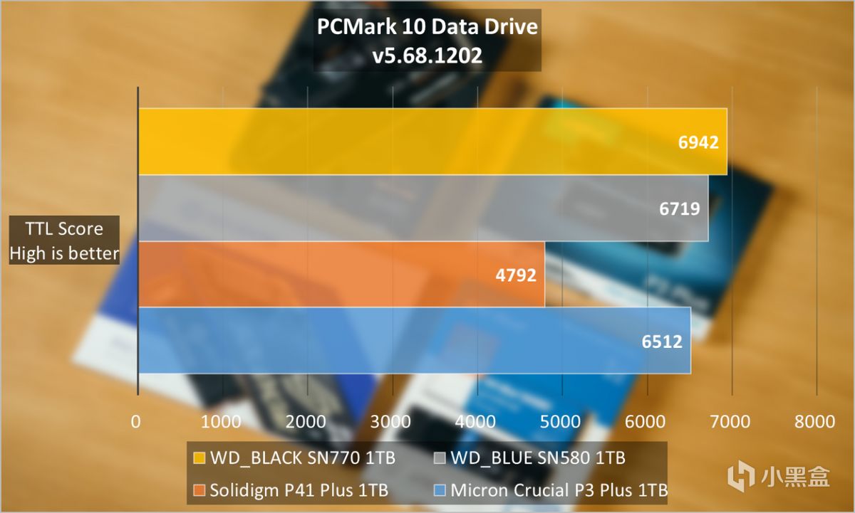 而更注重数据传输的PCMark 10 Data Drive中,这可以看到WD_BLACK SN770更好一些。