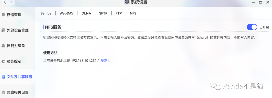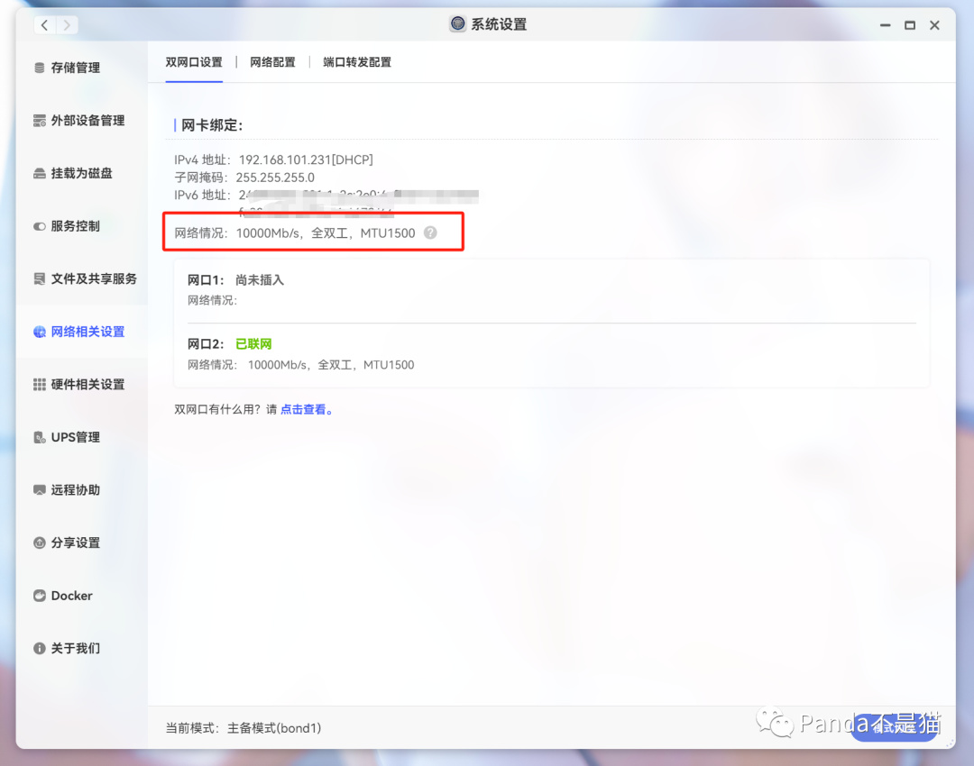 本次Z423除了CPU以外最为亮眼的便是万兆的电口了,在网络设置中,你可以看到网络情况来判断是否激活万兆。而V6、手动配置网络以及端口转发也都在这里。极空间默认使用的服务端口为5050,所以那些说跑路的别再问了,本地账号一样可以通过端口实现登录。