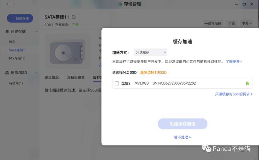 和Z4Pro一样,Z423也已经用上了全新的存储管理。目前固态和机械均可以单独创建存储池,也可以将固态作为缓存盘使用。存储规格上除了极空间自家研发的ZDR模式,目前支持raid1与raid5模式,官方也透露了后续会开放更多的raid模式供大家使用,例如适用于多盘位的raid6与raid10。