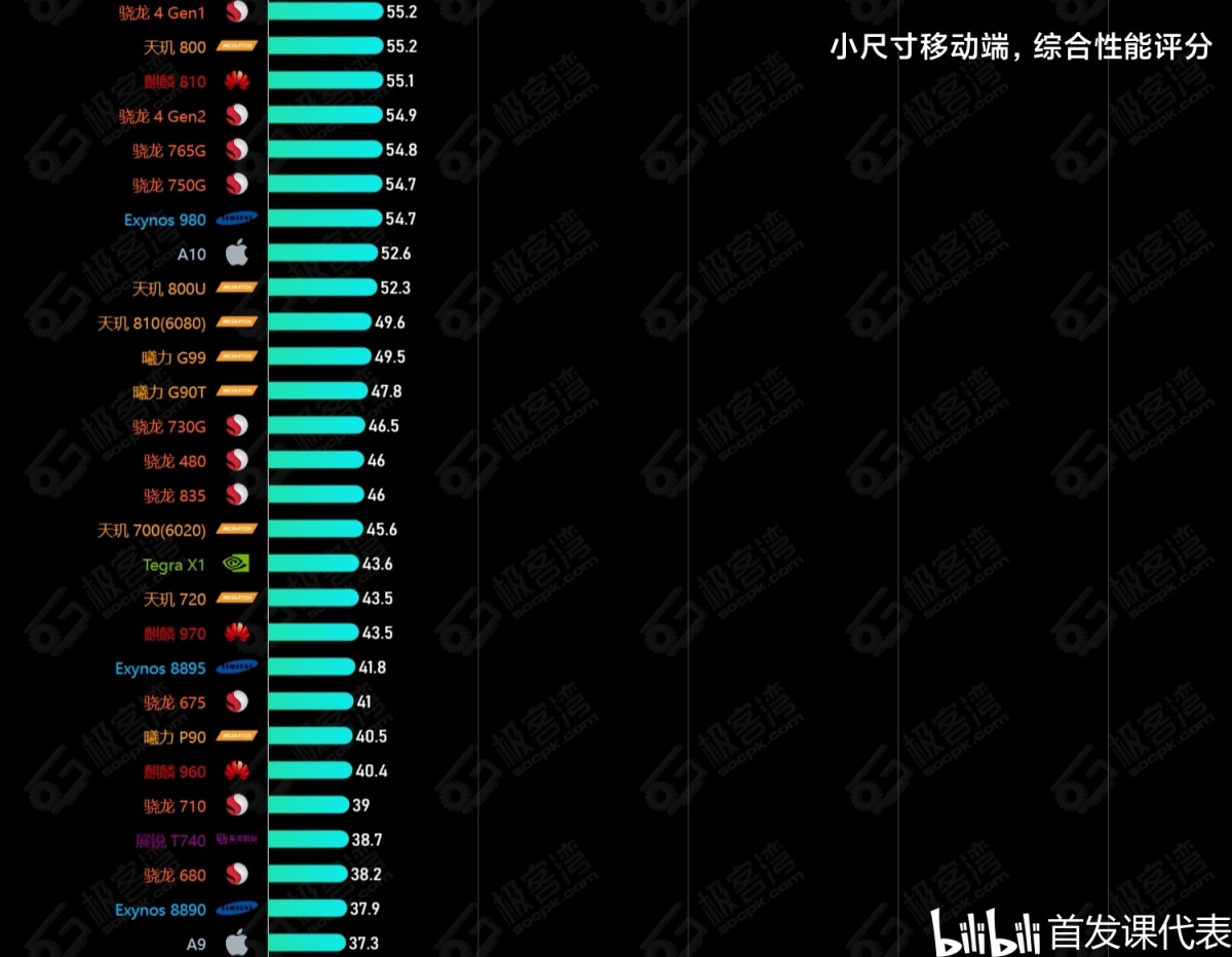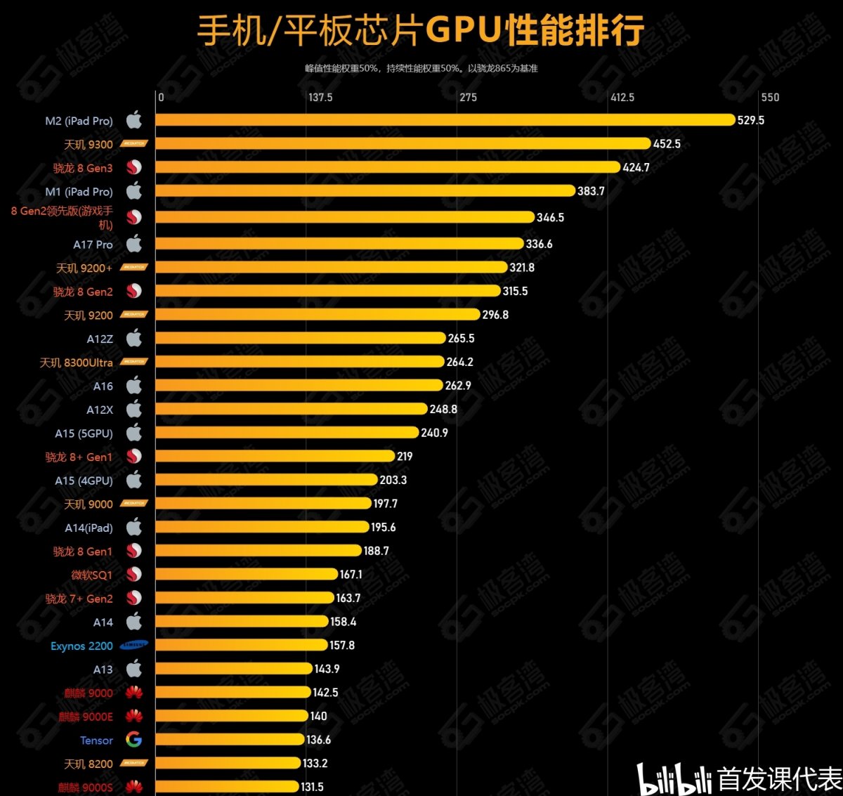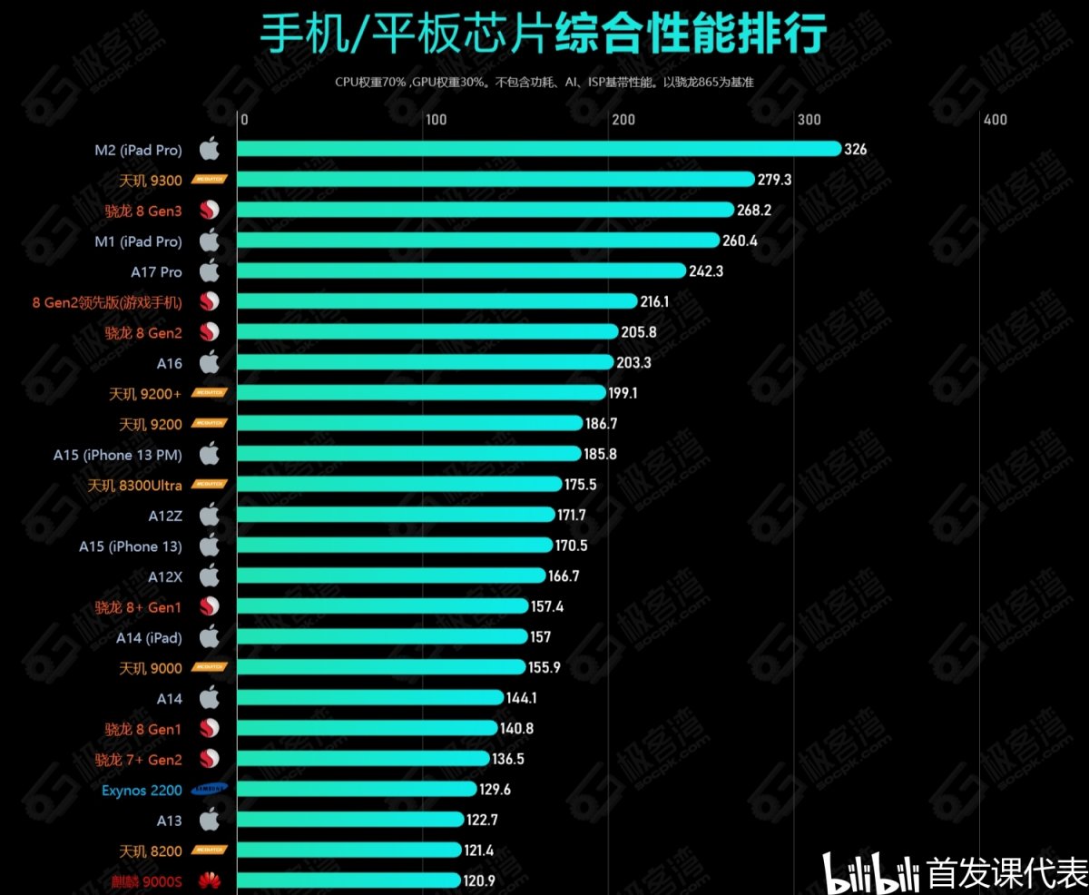 ——評分權重佔比:以CPU70%,GPU權重30%,驍龍865爲單位基準。
