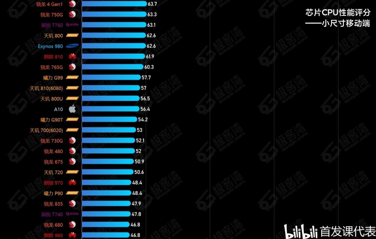 【3】以單核30%,多核權重70%,驍龍865爲單位基準,驍龍680,綜合CPU性能評分46.8分,領先麒麟960,弱於驍龍835。
