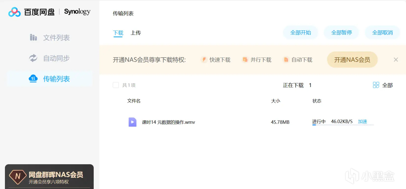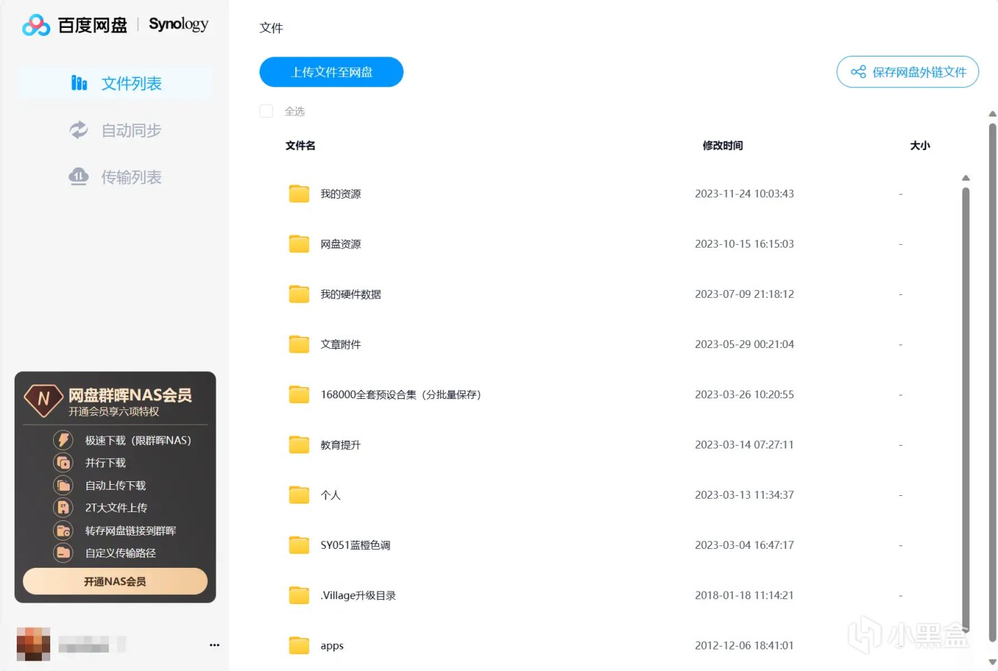 ▼ 登錄後的界面和百度網盤網頁版高度相似,個人覺得還蠻好看的,大大大大大網盤羣暉NAS會員的廣告在左下角相當顯眼。