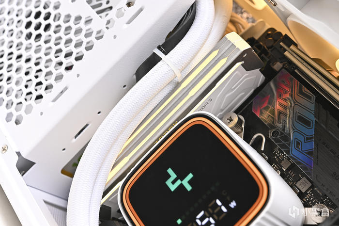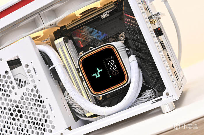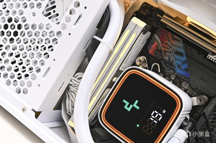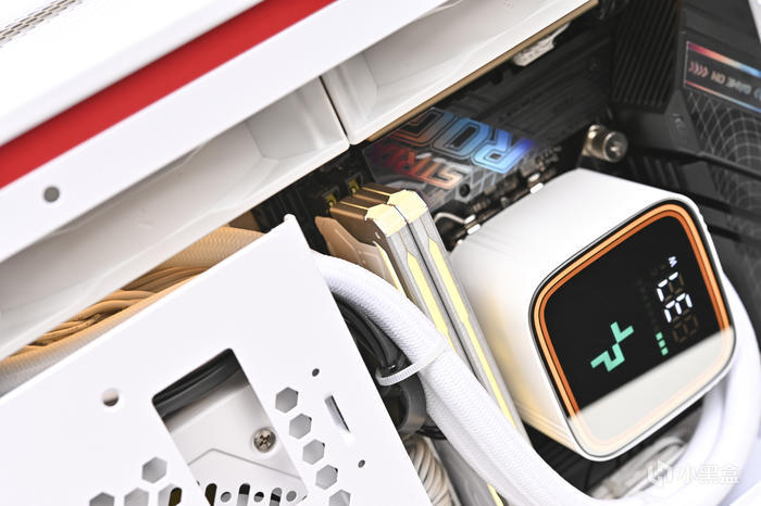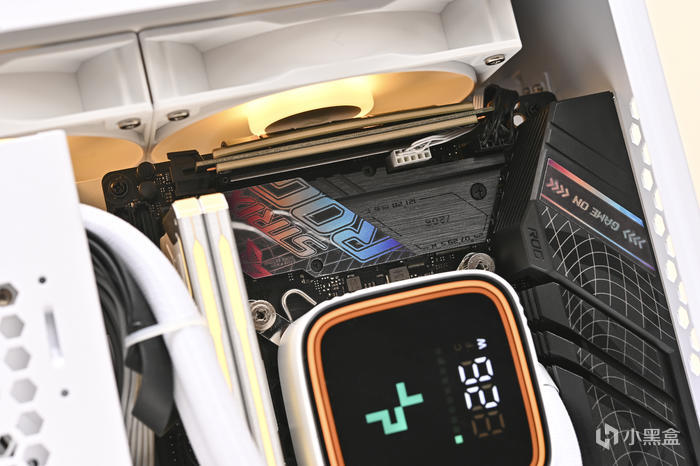 其他硬件方面,使用 Intel 13 代平臺,主板使用 ROG STRIX B760-I Gaming WiFi, 擁有 8+1 相 CPU 供電(80A)和良好的散熱器兼容度;顯卡則是來自影馳 GeForce RTX 4070 金屬大師 OC,無光金屬機甲風格,8+2 相數字貼片供電兼顧散熱與性能,328mm 長度+緊湊的兩槽設計;內存搭配使用了宇瞻 Zadark Spark RGB DDR5 6000 32GB(16GBx2),專利五段式超廣角燈效,支持 intel、AMD 雙平臺;固態硬盤來自影馳 HOF EXTREME 30 M.2 PCIe 4.0 2TB,連續讀寫 7000/6500 MB/s,採用優選 3D NAND 顆粒,羣聯 PS5018-E18 主控,內部集成智能溫控和第四代 LDPC 數據糾錯機制,數據更安全,功耗更低;電源來自安鈦克 NE1000W ATX3.0 金牌全模組,採用全日系電解電容,通過了 80PLUS 金牌認證,支持最新一代 Intel ATX 3.0 標準,原生支持 PCIe 5.0 Pin 顯卡供電接口,最高可支持 600W 釋放 40 系顯卡性能;散熱器來自九州風神冰堡壘 240 青春數顯版白色版,雙光環無限反射冷頭,採用鋁合金電泳白色外殼,高光黑透頂蓋、漸變 ARGB 雙光環燈效和實時數顯屏幕讓優雅永不過時;硅脂來自九州風神 DM9 大師級導熱硅脂熱阻值爲 0.036℃·cm²/W,擁有優異的導熱、耐溫、絕緣性能,不固化,塗抹順滑,適用於 CPU/GPU 散熱拆裝,熱敏電阻、溫度傳感器等電子元件。介紹這麼多,下面進入裝機環節。