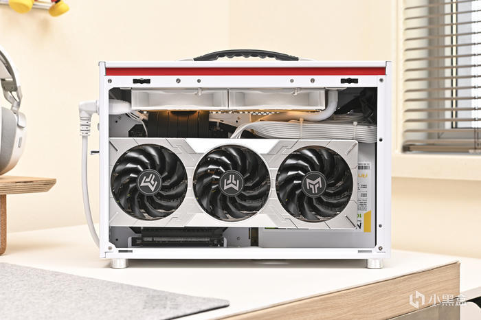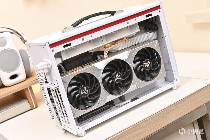 今天帶來:可以裝 ATX 電源的 ITX——ROG B760-I+影馳 4070+機械大師 iF13 裝機展示。機箱來自機械大師 iF13 邏輯庫,這是一款 A4 ITX 機箱,整機尺寸爲:405x200x320mm,約 13.5 升,淨重:約 3.5kg,外形方正小巧,共有典雅黑、極地白二色可選,本次展示白色款,可正置,立置(需搭配 iDOCK 立式底座)。整機採用 0.8mm SPCC 鋼材質製成,內外雙殼“L”型模塊化設計,結構堅固,側板採用卡扣式免工具拆裝,安裝更便捷。兼容性方面,支持 ITX 主板,頂部支持 240mm 水冷安裝,風冷下壓式 CPU 散熱高度最大 67mm,支持ATX/SFX/SFX-L 電源,345mm 長度顯卡(雙槽、三槽位均可)。存儲方面,搭配擴展支架,最大支持 2x 3.5 寸 HDD,以及 3x 2.5 寸 SSD。得益於機身內部的特殊電源倉結構,這款機箱是可以安裝 ATX 電源的(長度 ≤140mm),同時電源倉可以提供線材收納功能。機箱 240 水冷模式下具備三種安裝方式:① ATX 電源+雙槽顯卡。此時電源長度 ≤140mm,顯卡長度 ≤345mm,厚度 ≤45mm,還可安裝 3x2.5 寸 SSD;② SFX/SFX-L 電源+三槽顯卡。此時顯卡長度 ≤345mm,厚度 ≤65mm,還可安裝 3x2.5 寸 SSD;③ ATX 電源+單風扇顯卡+多硬盤。此時電源長度 ≤140mm,顯卡長度 ≤180mm,厚度 ≤45mm,搭配擴展支架可安裝 1x 120/140mm 風扇,還可安裝 2x 3.5 寸 HDD,以及 3x 2.5 寸 SSD。本次方案採用第一種安裝方案,得益於機械大師 iF13 頂板和前面板一體化 L 型模塊化設計,機箱 6 個面均可下手,釋放空間,讓 ITX 機箱安裝不再困難,需要注意的是,ATX 配套線材一定要理順紮緊避免碰觸頂部水冷扇葉。