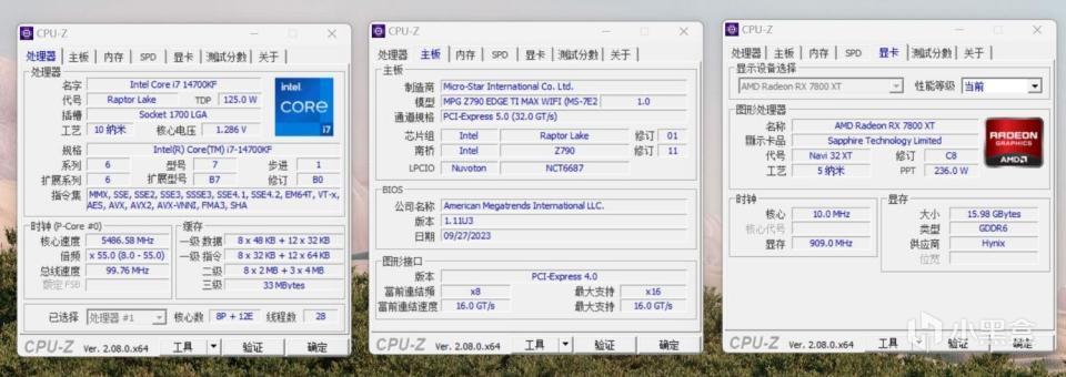 運行CPU-Z,處理器正確識別,默認頻率是5.5GHz,主板是MPG Z790 EDGE TI MAX WIFI,顯卡是AMD Radeon RX 7800XT