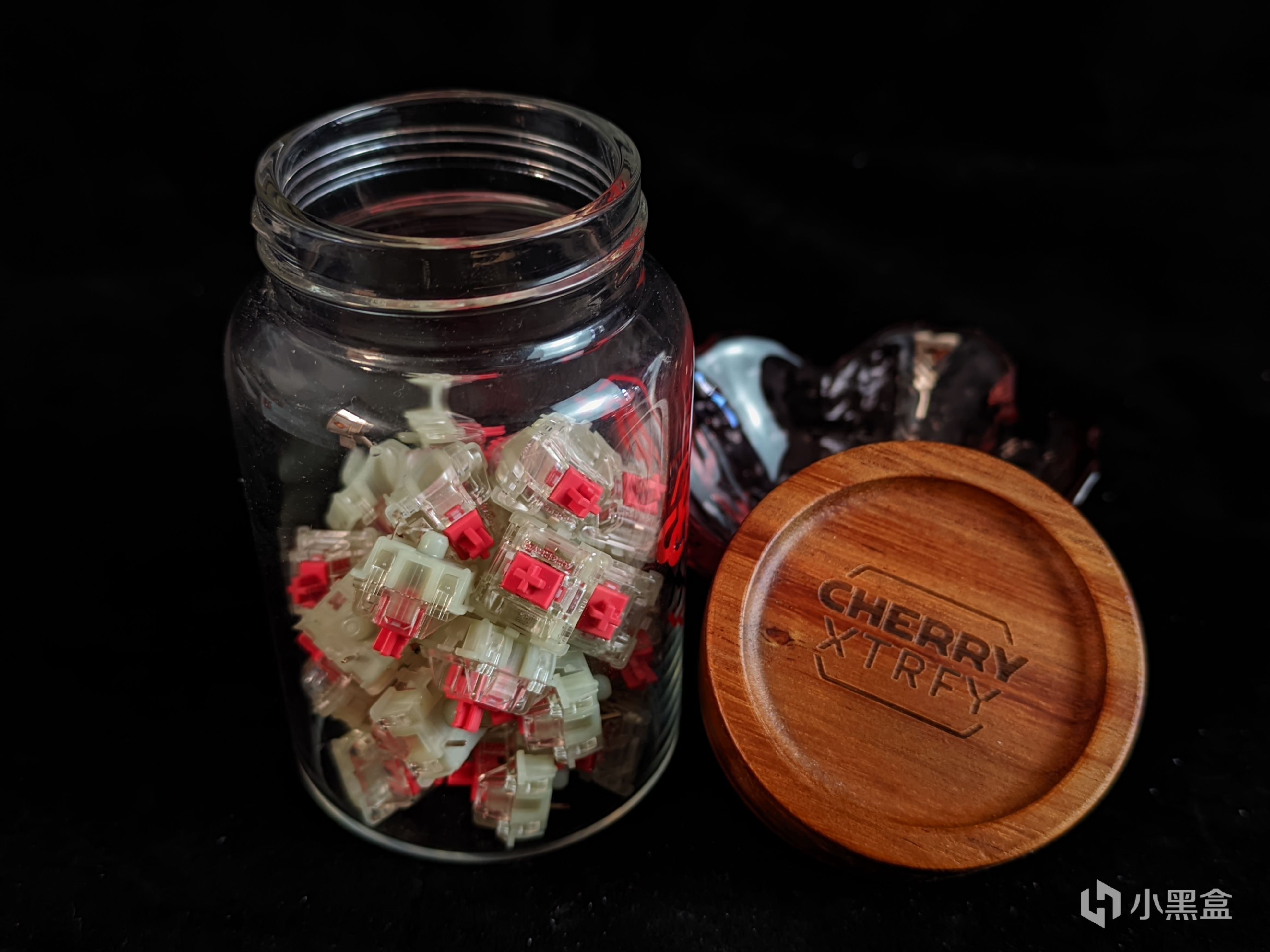 谁还说我稿子里面都是些不入流的~作者运气很好啊,在樱桃最近的众测中抽到了名额,所以成功拿下一罐静音红轴,只能说,运气有的时候来了真的很让人开心啊,而本次樱桃的量贩装在包装上还是很漂亮的,高透的玻璃罐配上木质的盖子,在盖子以及罐子上都有着樱桃的标记,与其说是拿来用,不如说是当做摆件来看比较好。