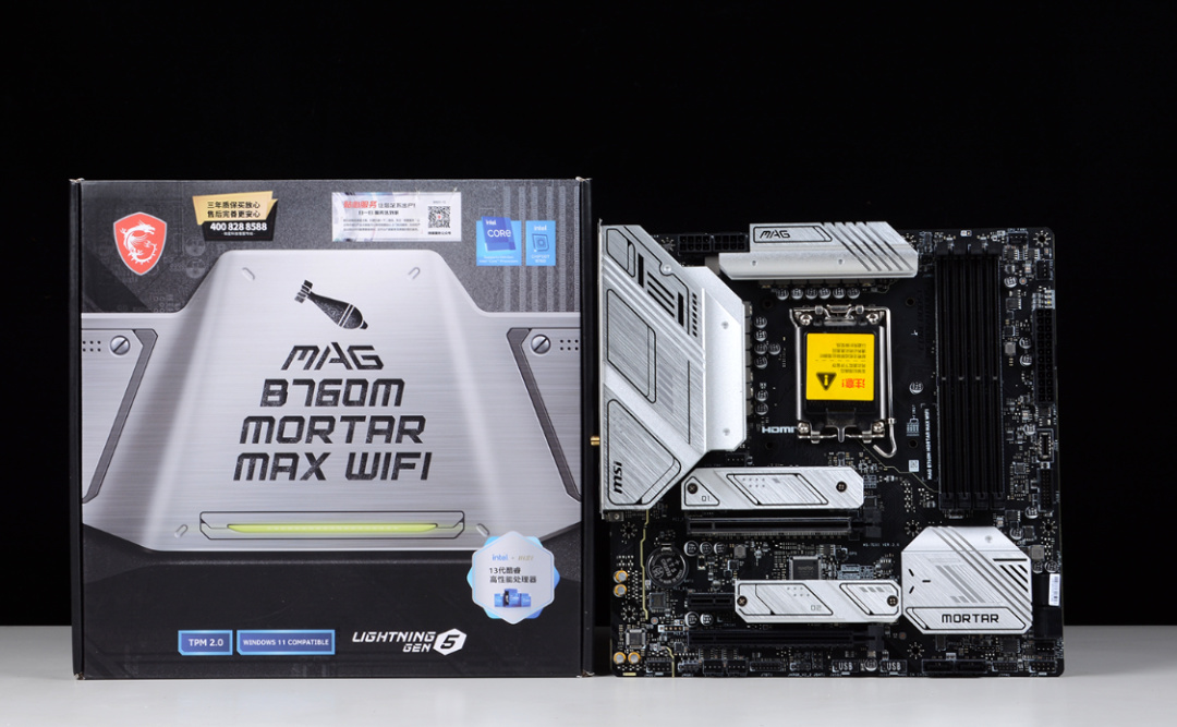 主板方面,機箱限定的前提下,咱當然也只能選M-ATX的板子,不過畢竟是帶K的i5,咱也想着上更高頻的D5,所以咱選擇的是微星MAG B760M MORTAR WIFI II主板。配置方面,主板採用12+1+1相DrMOS智能供電設計,拉滿13600K睿頻,也可以說是輕輕鬆鬆。更重要的是,主板優化了內存設計,最高可支持7800MHz OC高頻率,也方便咱白嫖更多的內存性能。