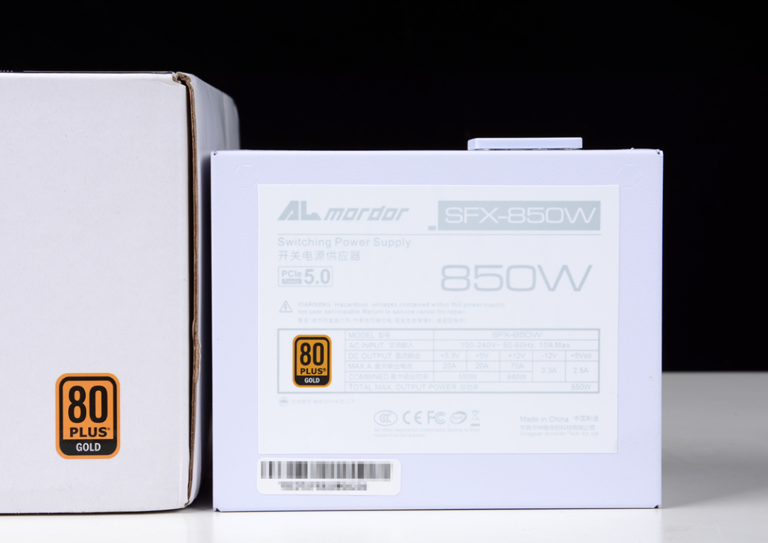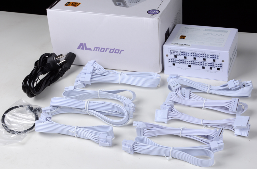機箱支持ATX電源安裝,但是咱爲了預留更大的理線空間和硬盤安裝空間,還是選擇了這款白色版的神鵰十三道(Almordor)SFX 850金牌全模組電源,電源三圍僅爲125*100*63.5mm,小巧的體積可以輕鬆裝進絕大多數機箱裏,同時這款電源的風扇還支持智能啓停,低負載狀態可以營造一個更安靜的使用環境。全模組的電源接口搭配上柔軟的扁線設計,也可以大大降低裝機理線難度;電源自帶原生pcie5.0接口,也能更好的適配高階的RTX40系顯卡。