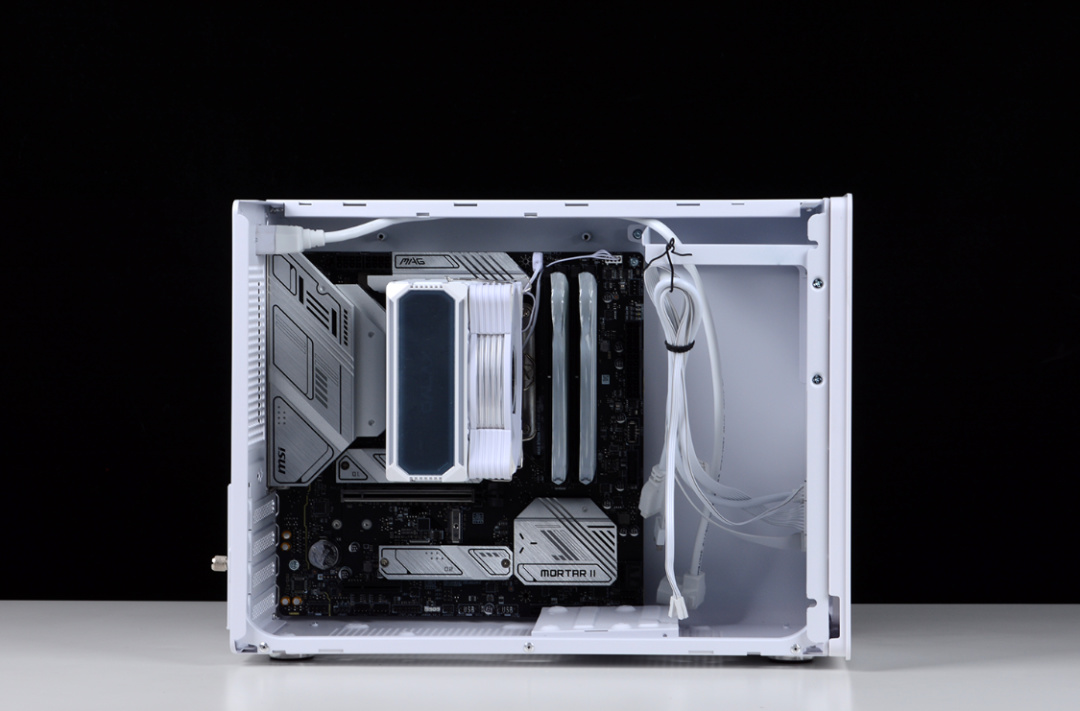 以未知玩家P60機箱爲核心打造的側透+手提臺式小鋼炮主機,顏值方面應該說是無可挑剔,散熱效能表現也很優秀,對於有便攜、小桌面空間但是高性能需求的玩家來講,應該會是不錯的選擇。聊回機箱本身,小體積+背側板不可拆,理線難度其實也不小,所以裝機選配風扇時,儘量選線材簡單的,能省不少事。