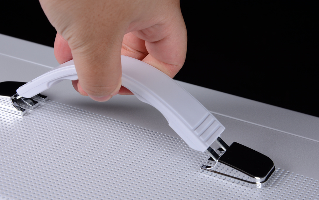 機箱頂部同樣密佈散熱網孔,同時還有個可回彈的提手設計,可以方便玩家直接將小主機拎着走。