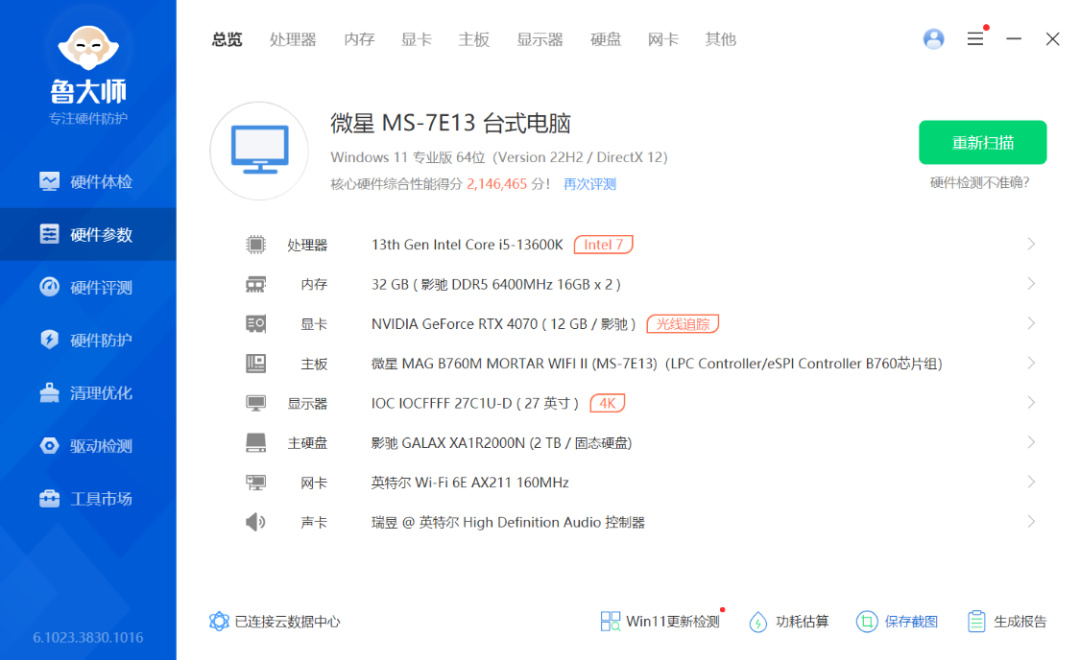 其實咱一開始計劃是直接將配置拉滿到4070Ti顯卡,奈何手上的獨苗4070Ti星曜OC顯卡有一丟丟超長,所以咱不得不放棄。轉而選擇了,身材更苗條,零RGB設計的RTX4070金屬大師OC顯卡,一體成型全鋁合金材質外殼,金屬質感拉滿。
