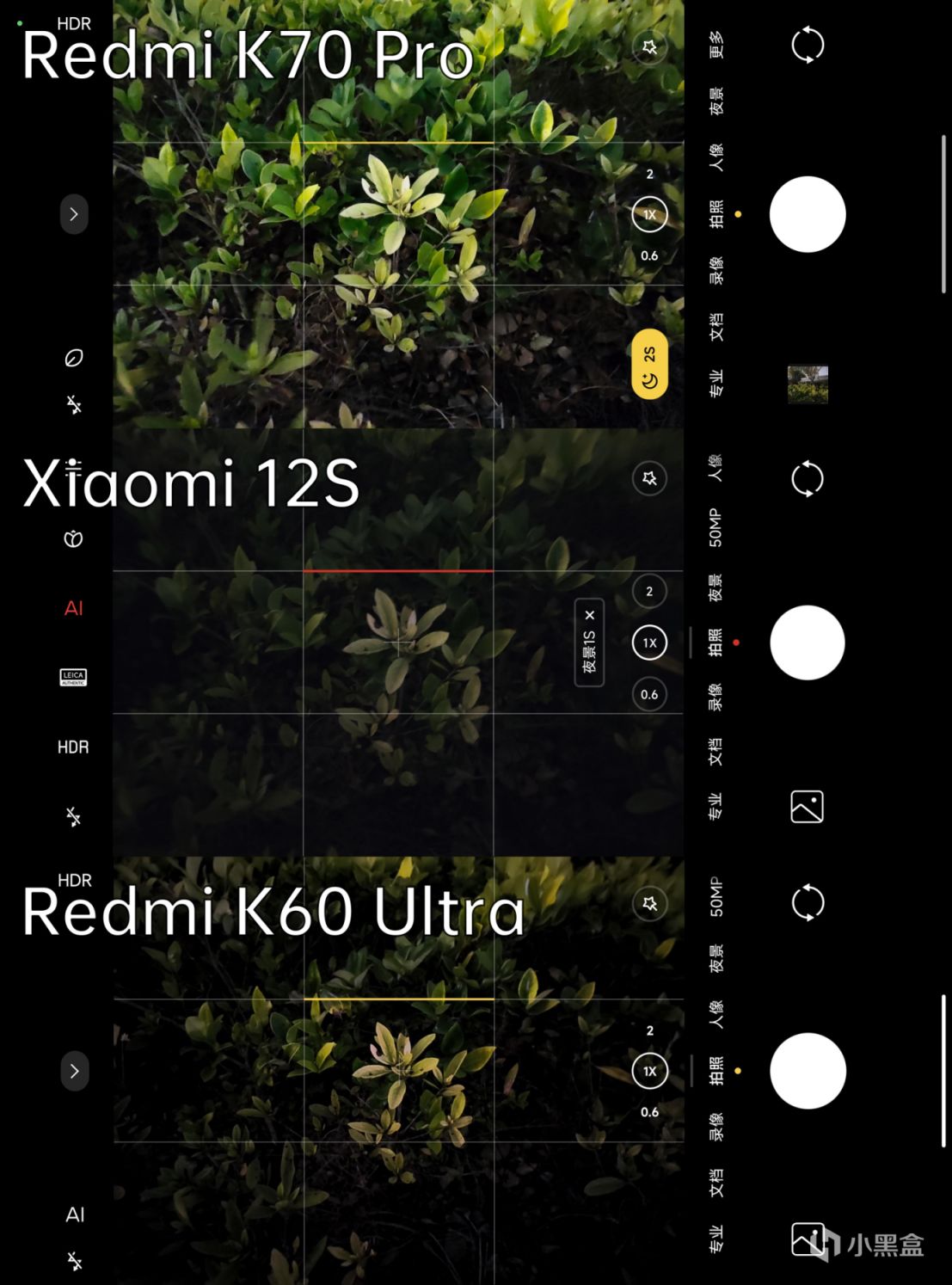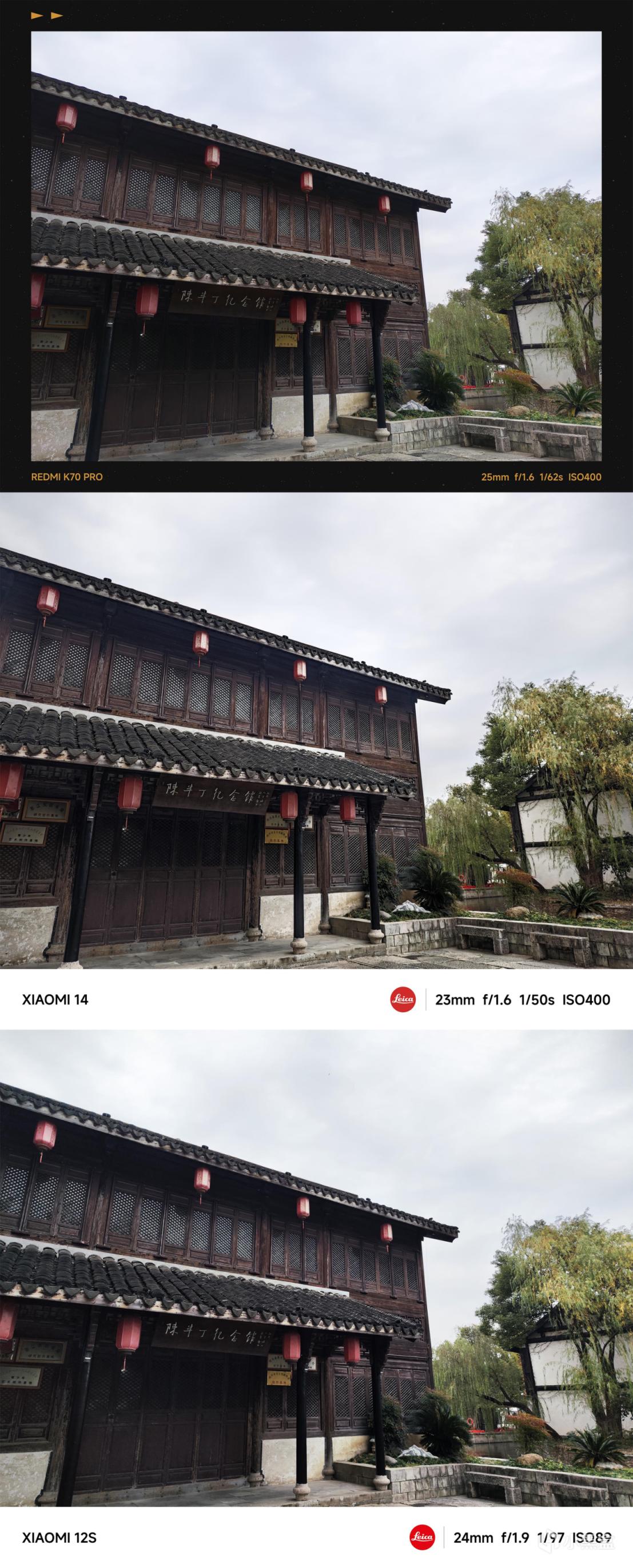 像這組對比中,Redmi K70 Pro和小米14都有很強的解析力,小米12S會稍差一點點。