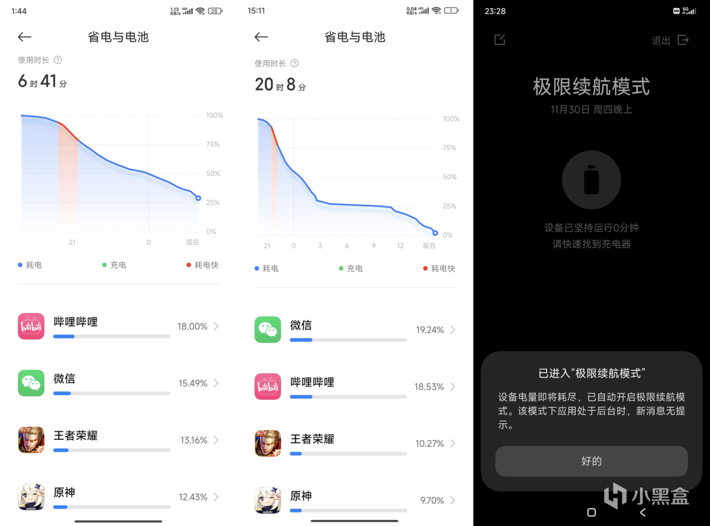 1小時30分鐘長視頻(嗶哩嗶哩) + 1小時30分鐘遊戲(原神、王者榮耀全高) + 1小時信息流App(15分鐘知乎、15分鐘頭條、15分鐘小紅書、15分鐘酷安) + 30分鐘短視頻(抖音) + 30分鐘音樂外放 + 15分鐘高德導航 + 15分鐘微信視頻 + 15分鐘微信語音 + 15分鐘微信聊天朋友圈 + 10分鐘電話通話 + 5分鐘淘寶購物 + 5分鐘美團 + 5分鐘1080p@60fps視頻錄製 + 5分鐘拍照,共計6小時30分鐘,剩餘電量28%。