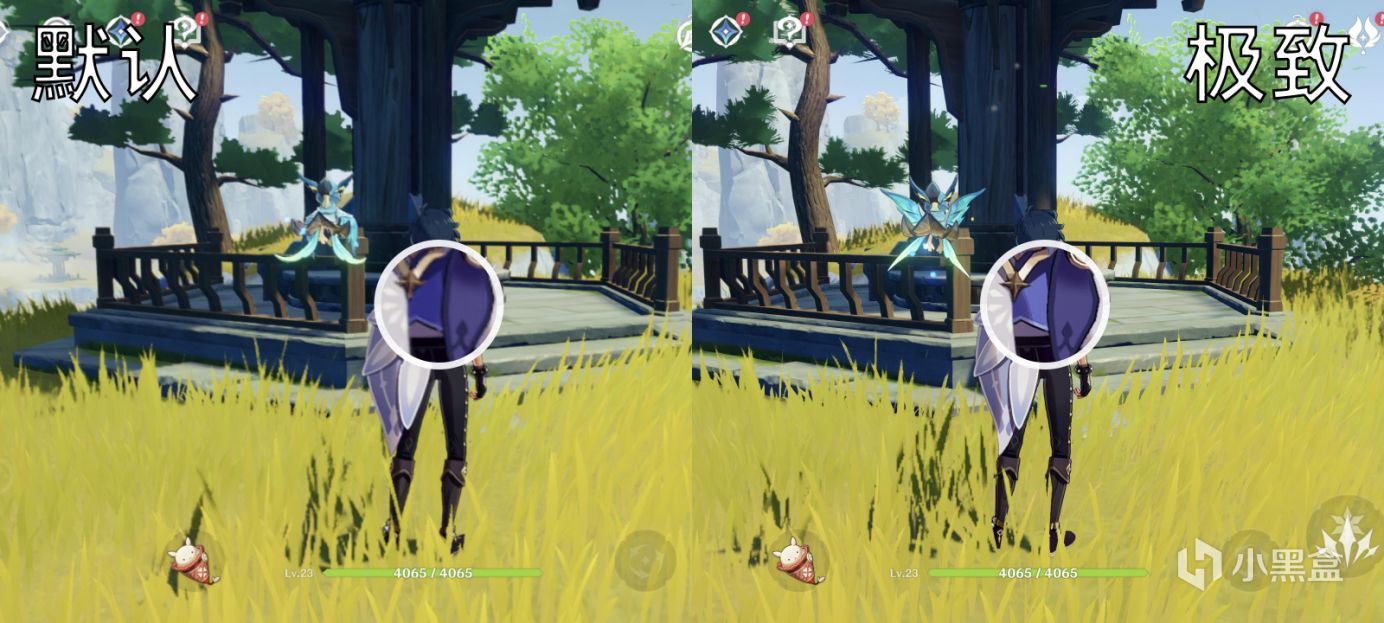 這也就是影調的差異罷了,實際上,我們將暗部白圈部分手動拉高亮度,會發現無論是解析力還是色彩還原,K70 Pro都會更好一些——快餐車上暗部的小字更清晰、草地裏的黃葉而不是綠葉……