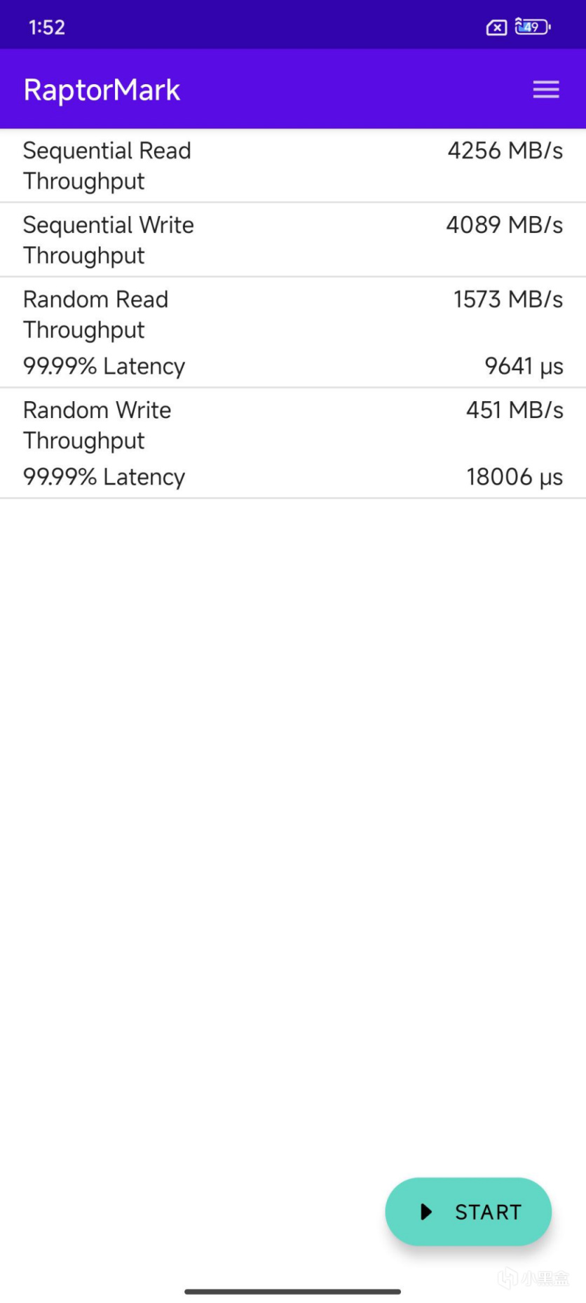 閃存爲UFS 4.0,官方也標註了順序讀取速度最高4GB/秒,實測RaptorMark順序讀取達4256 MB/s,順序寫入達4089 MB/s,隨機讀取達1573 MB/s,隨機寫入達451 MB/s。僅順序讀取相比小米14系列略弱一點。
