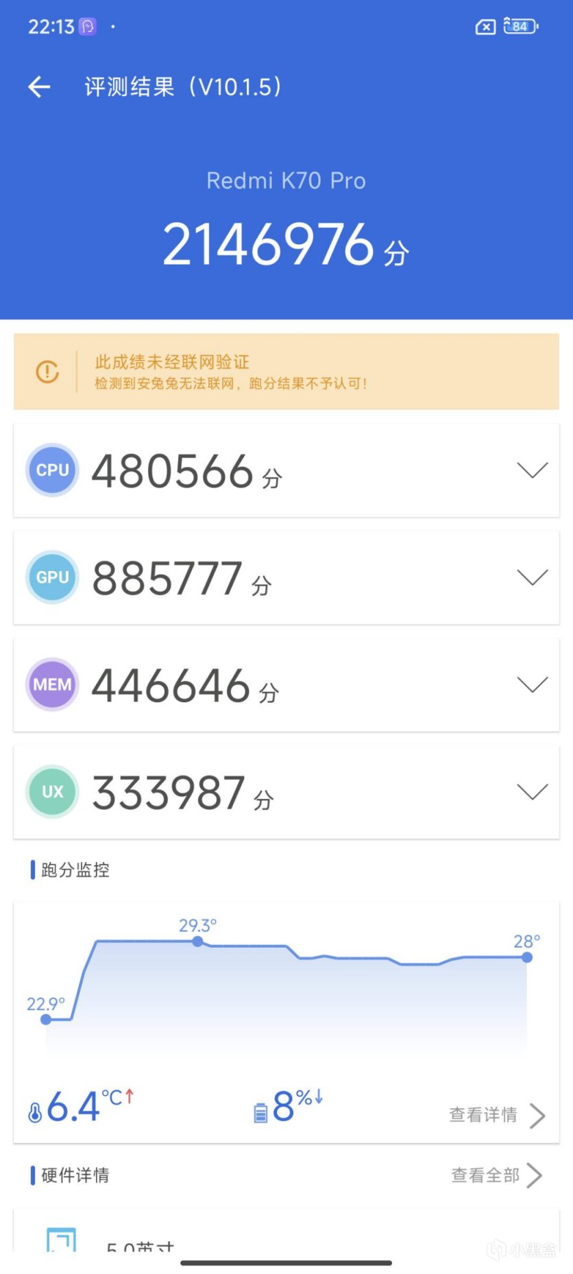 先來看Redmi K70 Pro的整機綜合性能跑分:安兔兔2146976,分項和小米14各有勝負,但差距很小。