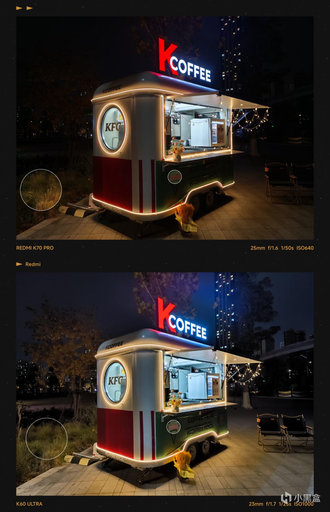 夜間才能拉開更大差距,拉上前代IMX800來看看,K70 Pro無論是影調還是對高光和眩光的壓制,都比K60 Ultra更好。K70 Pro在基於RAW域的AI降噪算法下,噪點大大減少,畫面純淨度也有很大提升。