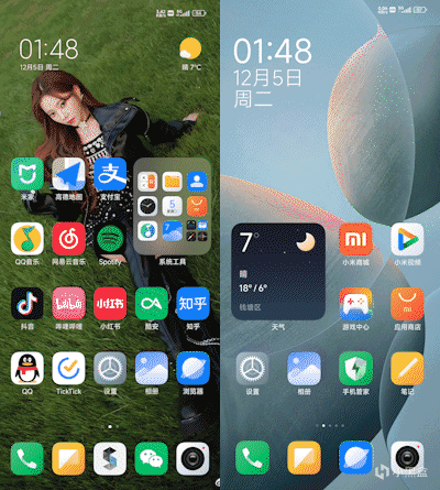而Redmi K70 Pro上動畫甚至又有小的提升,狀態欄下拉打開通知中心、控制中心時,桌面圖標又加入了新的後撤效果。