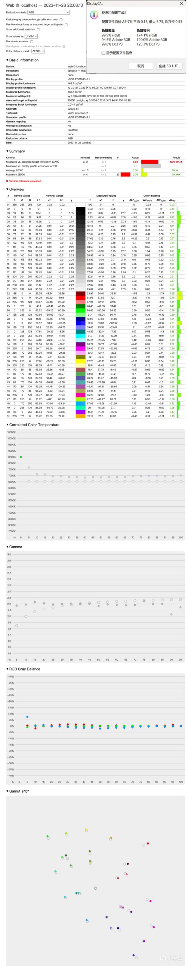 實測鮮豔模式下,色域覆蓋達到了99.9%的sRGB和99.8%的DCI-P3,色域容積達到了174.1%的sRGB、123.3%的DCI-P3,略遜色小米14一點,但比K60至尊版上的前代C7屏幕進步還是不小的。