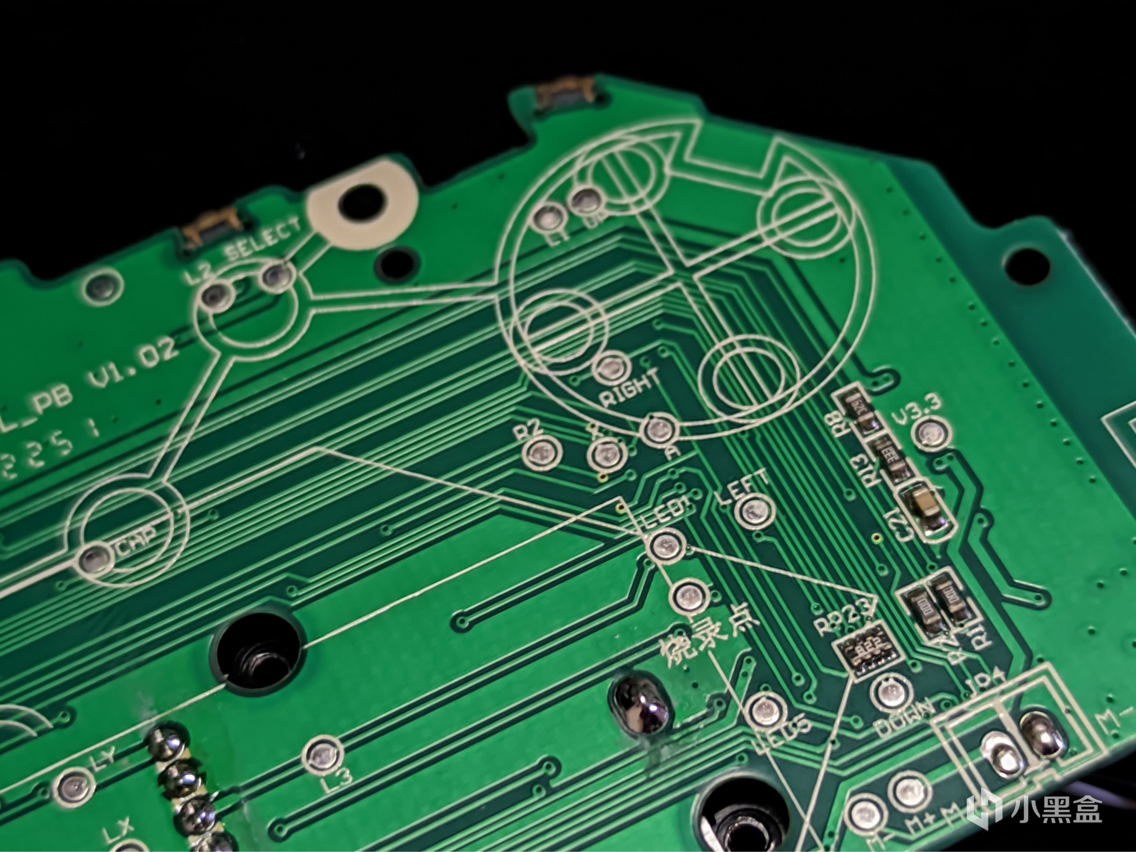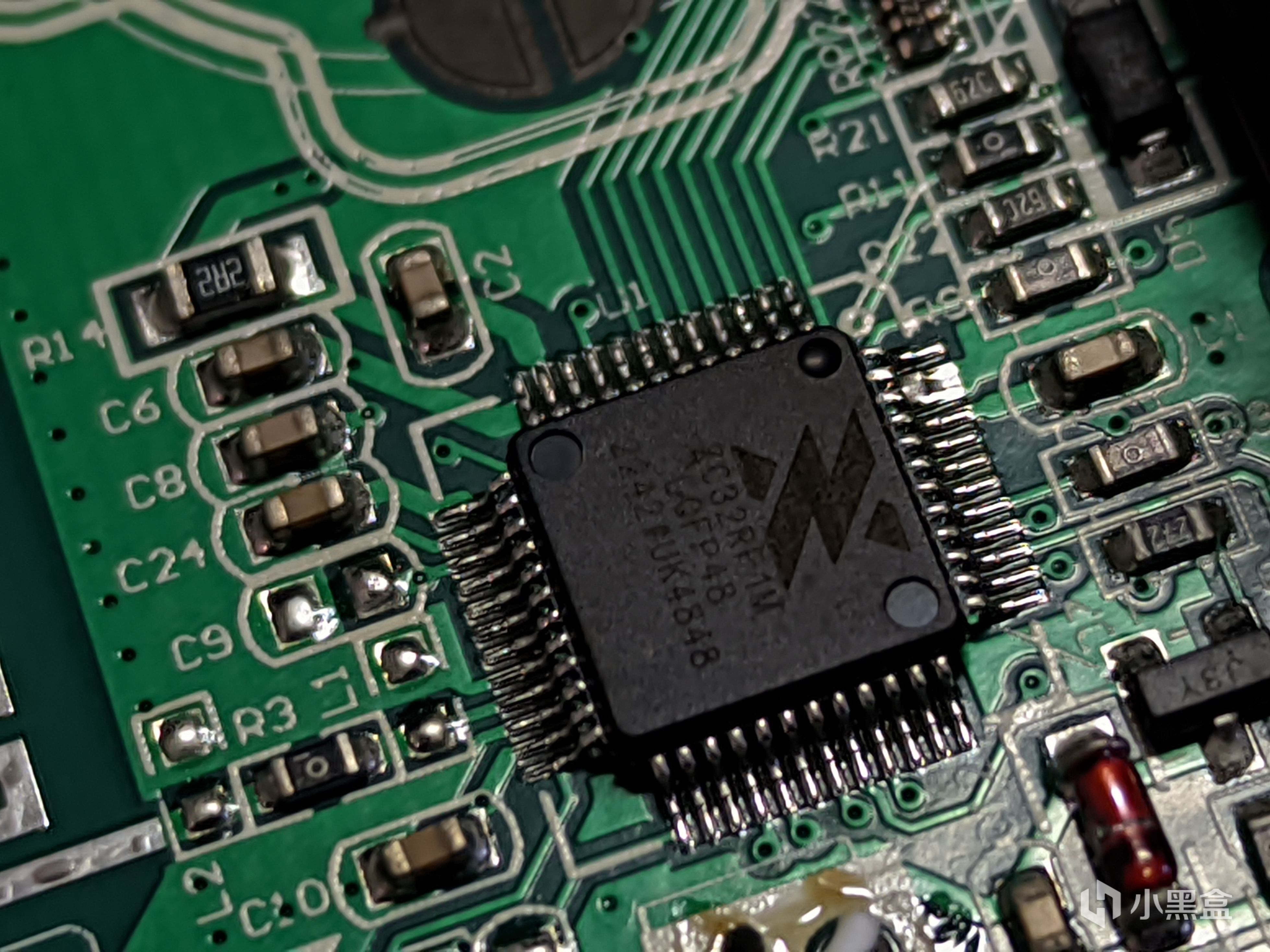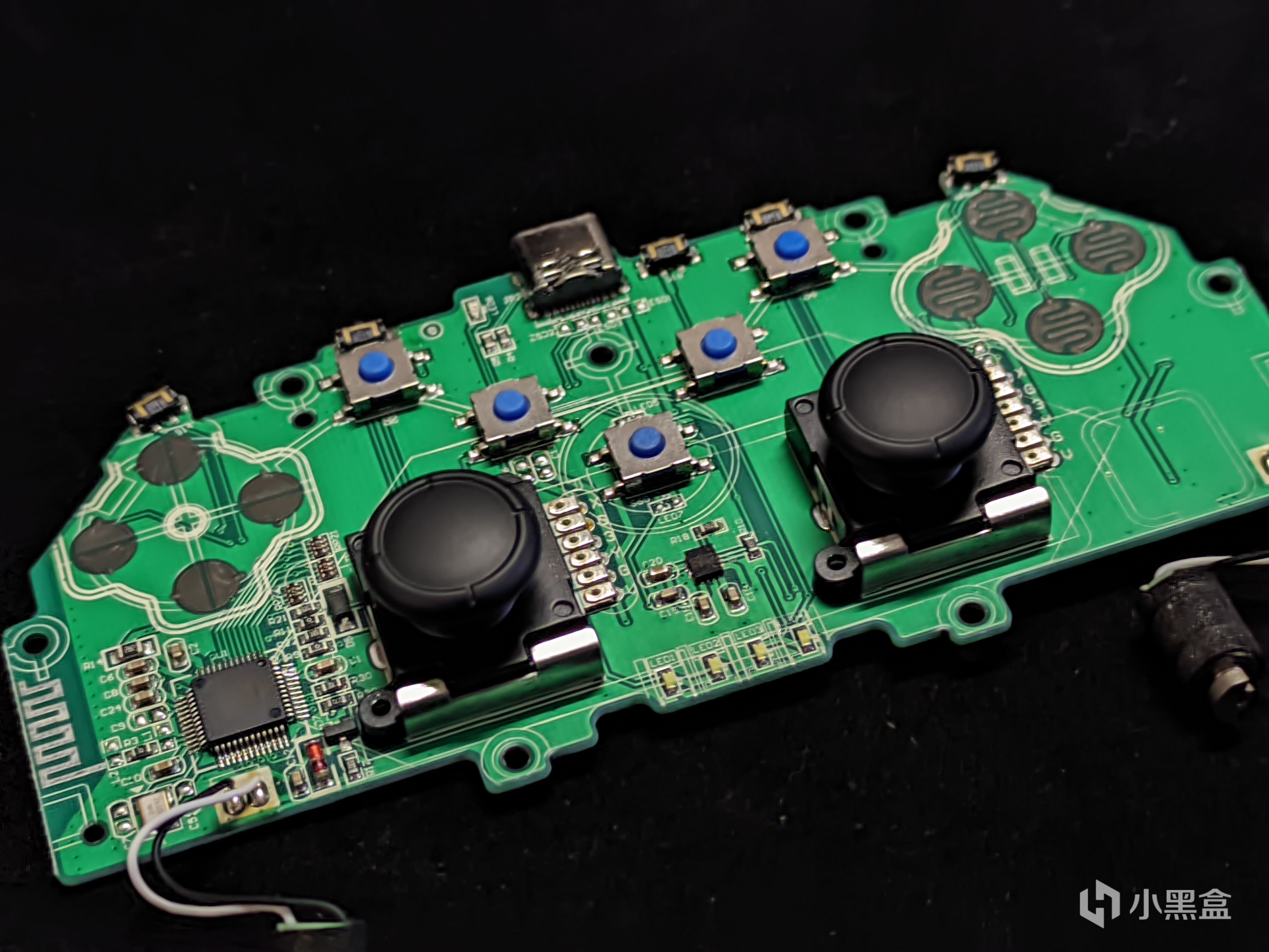 芯片部分在我意料之外的,使用了正經焊接,溢錫的情況也不算多,整體還算漂亮,畢竟我一開始以爲這玩意會是用的牛屎芯片呢,使用牛屎芯片的手柄其實很多,難得看到一個正經芯片,很感動哈,不過考慮到這個價格,倒也算是正常(某個六百多還在用牛屎的,自己去檢討一下去)