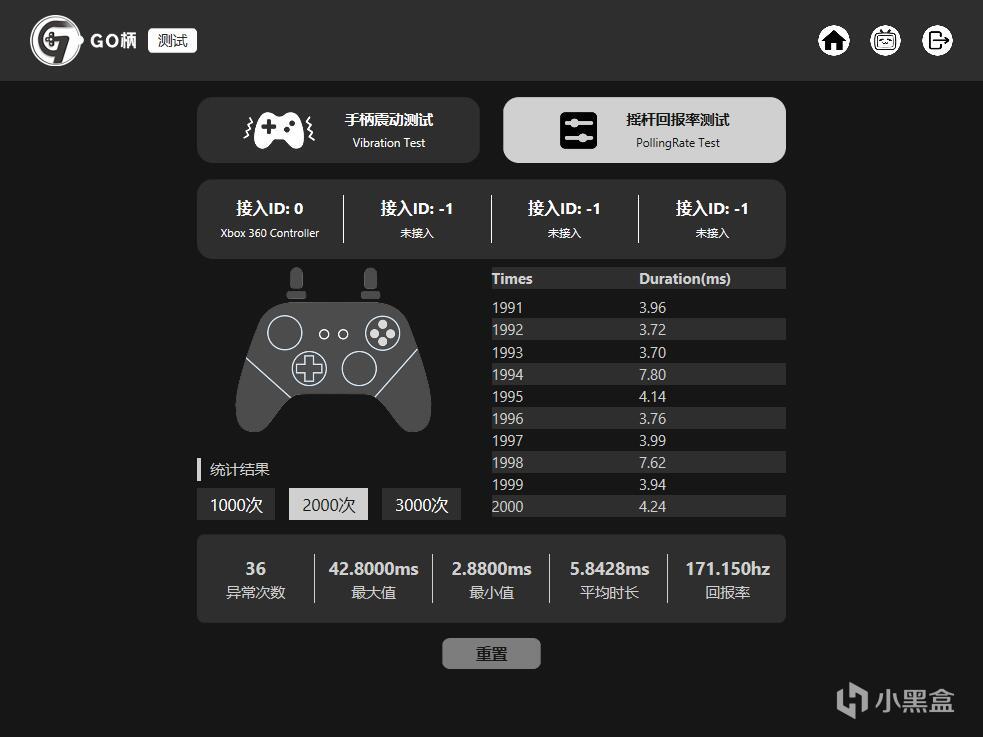 手柄本身的回報率部分,有線回報率在175左右,而在藍牙模式中則爲125左右,不支持2.4g模式,這個數據拿來玩一些遊戲是沒有問題了,回報率在125以上基本就沒什麼大感知了。