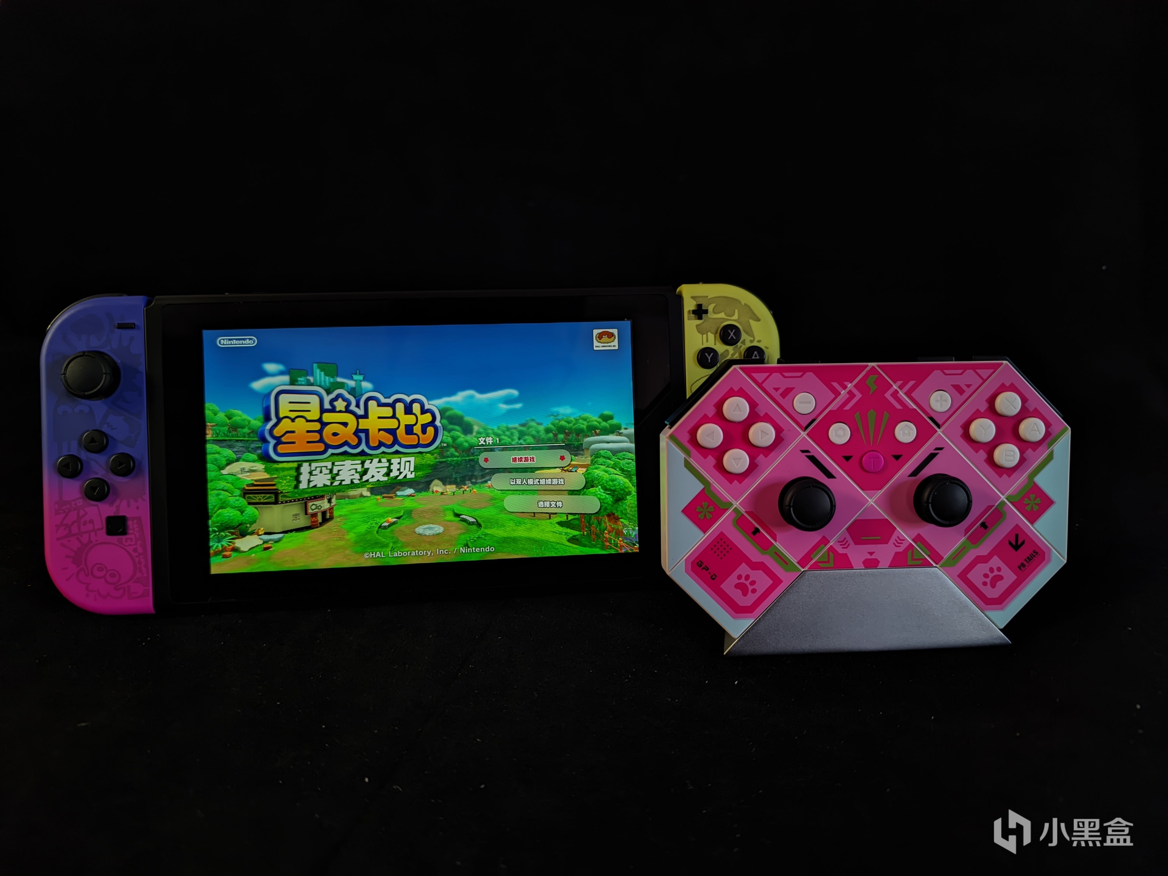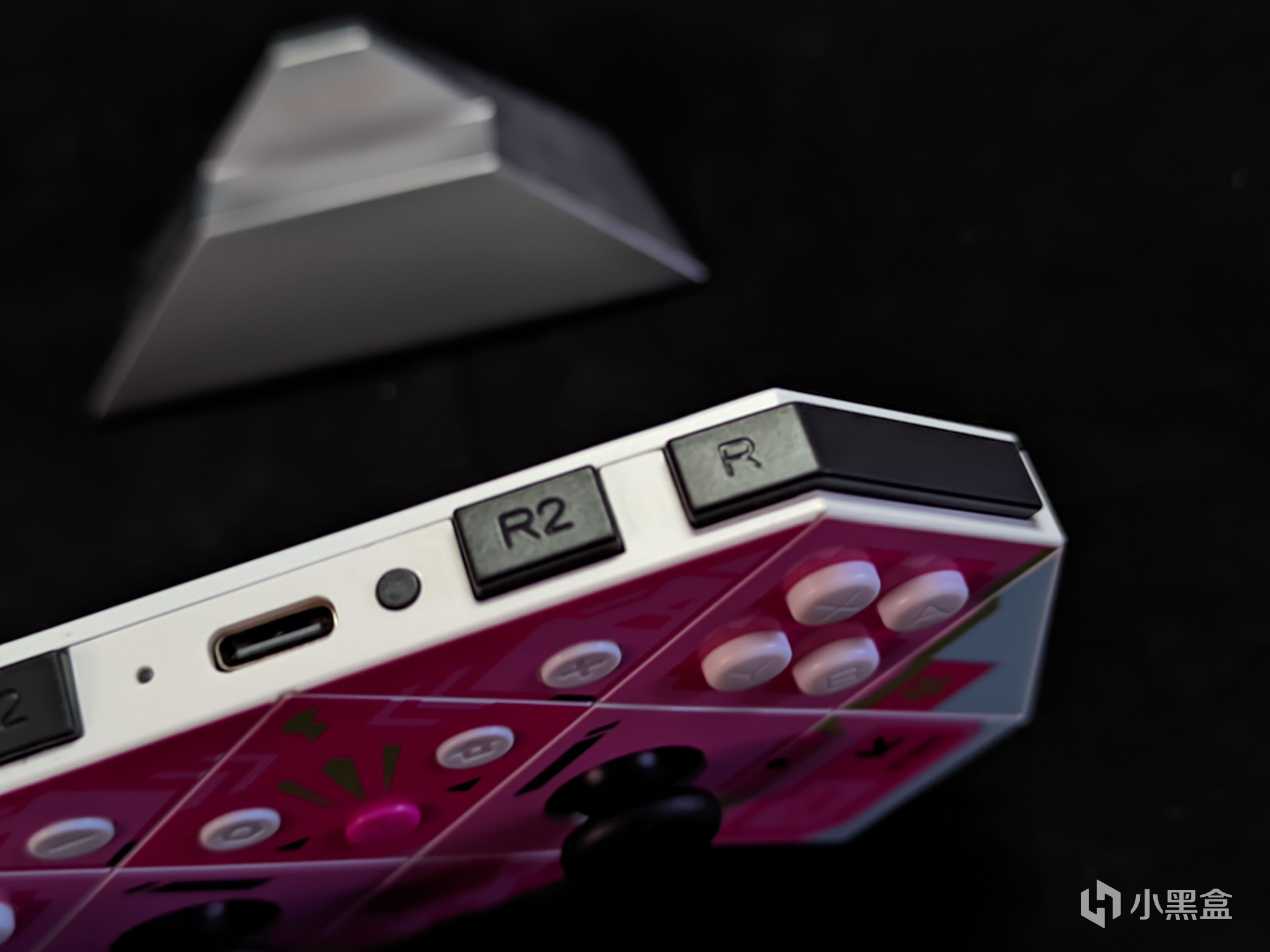 與主流手柄較爲不同的佈局設計主要是在頂部可以體現,左右的肩鍵以及鏈接鍵,指示燈,還有C口的中線是非常規整的在一條直線上的,這個設計我很喜歡,但其本身的適應需要一些時間,但好在並不算難用,至少在我快樂卡比的時候,這個按鍵設計沒對我造成什麼困擾。