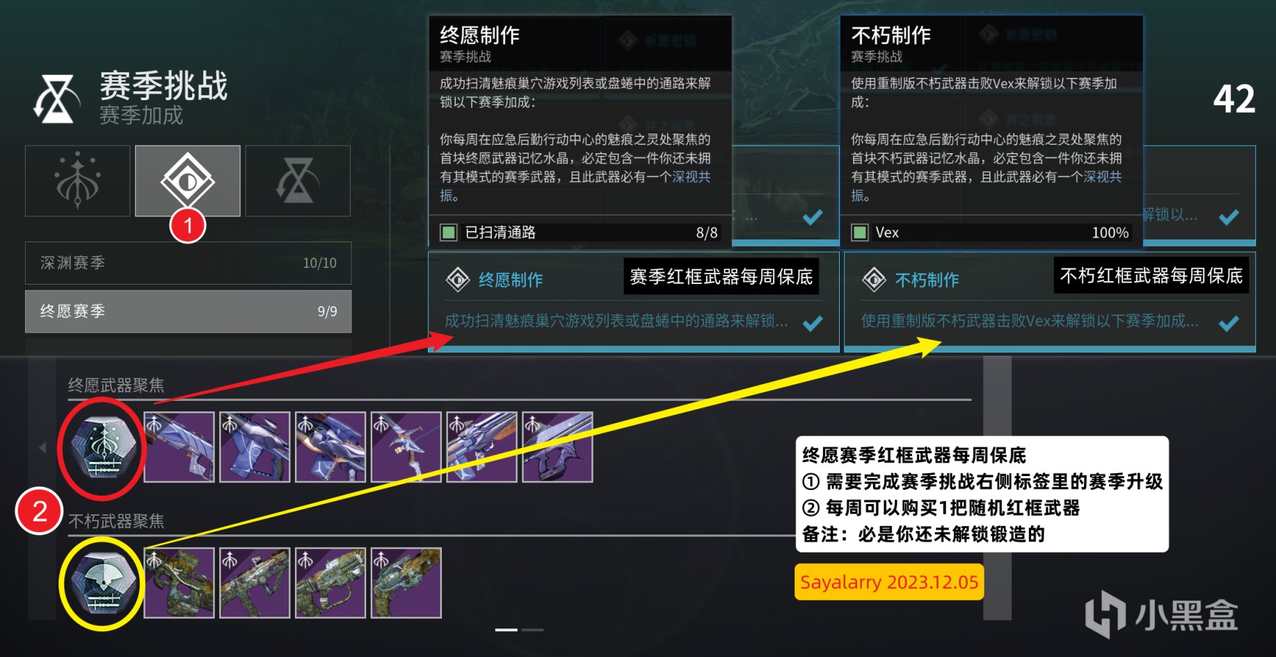 獎勵4000光明之塵的賽季挑戰,要求完成全部的66個挑戰才能獲得(意思就是這是一個需要修復的問題,時間未知),而不是像過去的賽季那樣允許玩家跳過3個挑戰