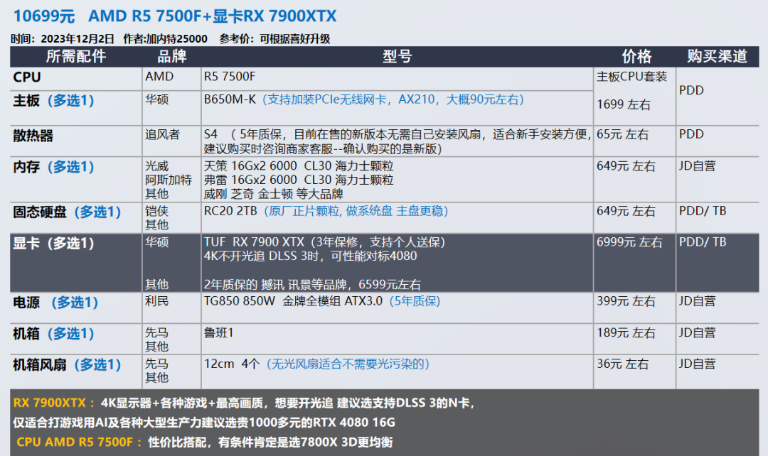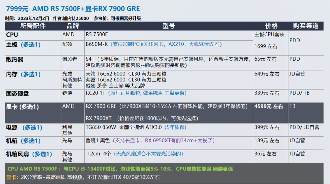 7999这套适合对AMD有一定了解,对AMD显卡没有担心的朋友去选择。
