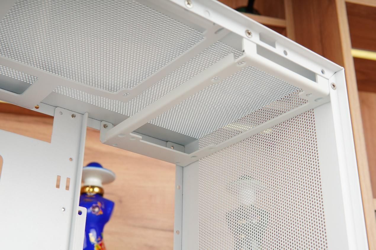 顶部也还有两个12025风扇安装支架,在使用SFX电源的时候可以在这里安装上240规格的冷排。
