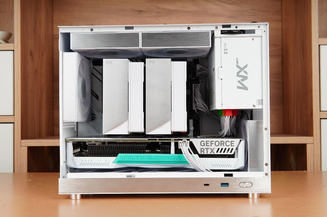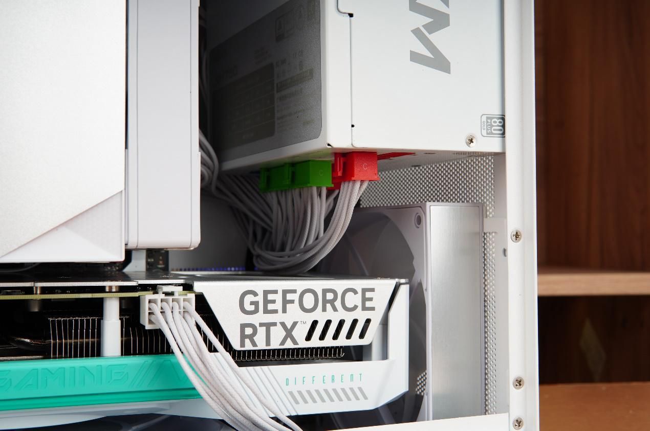 电源为全模组接口设计,并且采用了全新的接口颜色管理,不同类型的接口均用了不同的颜色进行区分,比如蓝色的SATA供电接口、绿色的主板24PIN接口、白色的12VHPWR接口以及红色的CPU、显卡电源接口。配件到这里基本介绍完毕了,下面就来看看装机效果如何。