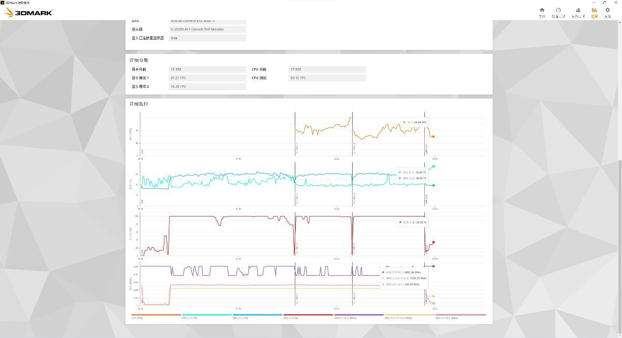 在3DMARK中得分13878,这个分数相当不错,显卡分数达到13350,根据3DMARK给出的数据战地5能够在2K分辨率下以125+FPS的帧率运行。