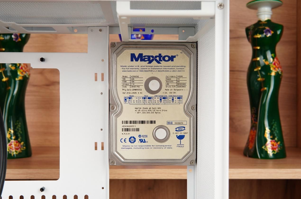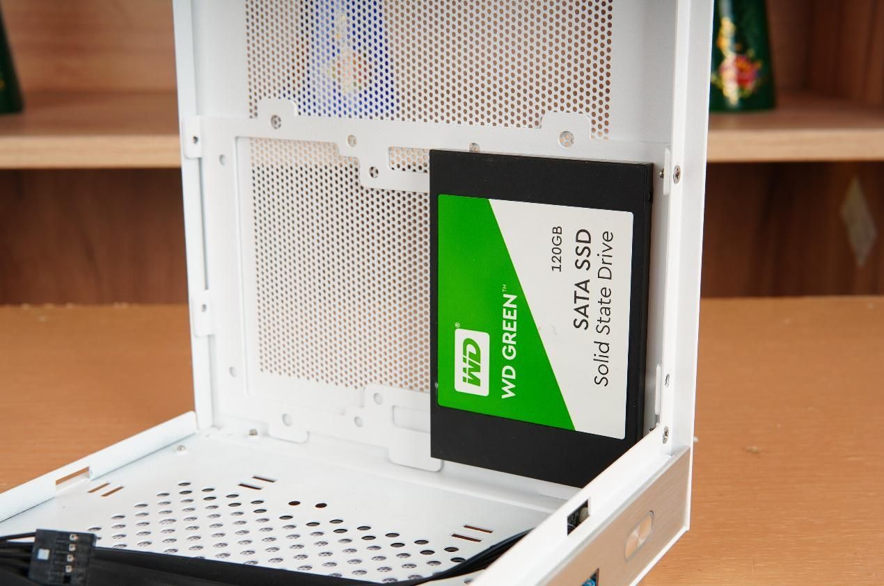 机箱前面板内部还设有一块风扇、硬盘两用支架,可以支持安装一把12CM的风扇或者是两块2.5寸SSD硬盘/一块3.5寸HDD硬盘。