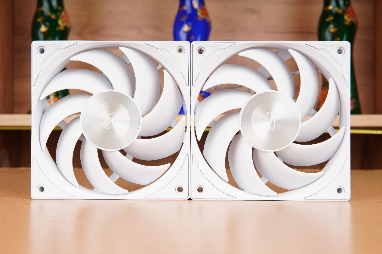 超频三RZ620配备了两个全新的F5 R120风扇,默认状态=转速范围为500-2000RPM,风量最大达到78.10CFM,风压最大为2.6mm/H2O,采用FDB动态液压轴承。搭配上述附件中提到的调速线,亦可把转速固定在1800RPM的安静模式或者是2200PRM的性能模式,在1800RPM转速情况下风量可以达到68.64CFM,风压则为2.1mm/H2O,在2200PRM转速情况下风量最大达到86.73CFM,风压则为3.2mm/H2O,性能比默认状态下还要更高,玩家可以根据自己的需求来选择相应的档位。