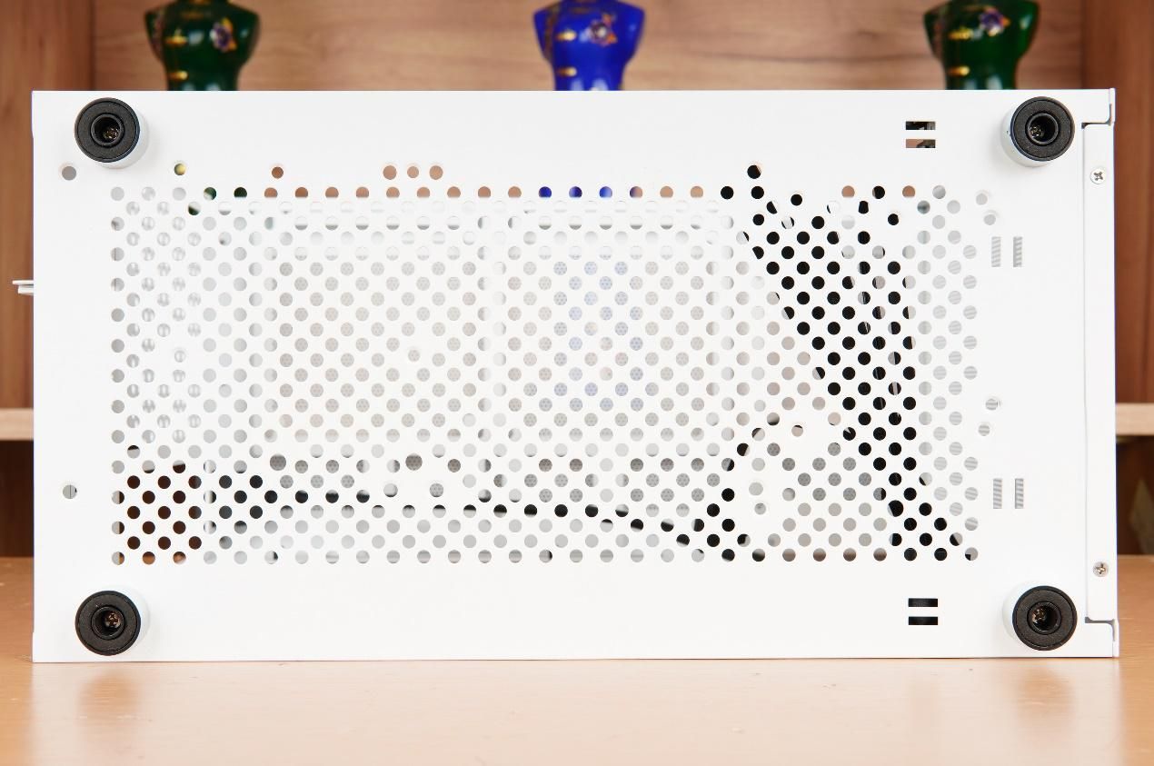 机箱底部设有两个120mm的风扇位,得益于机箱高度的增加,即便在安装双槽显卡的时候也依然可以安装常规25mm厚度的120mm风扇。机箱底部除了可以安装风扇外还可以选择安装一块3.5寸的HDD硬盘。