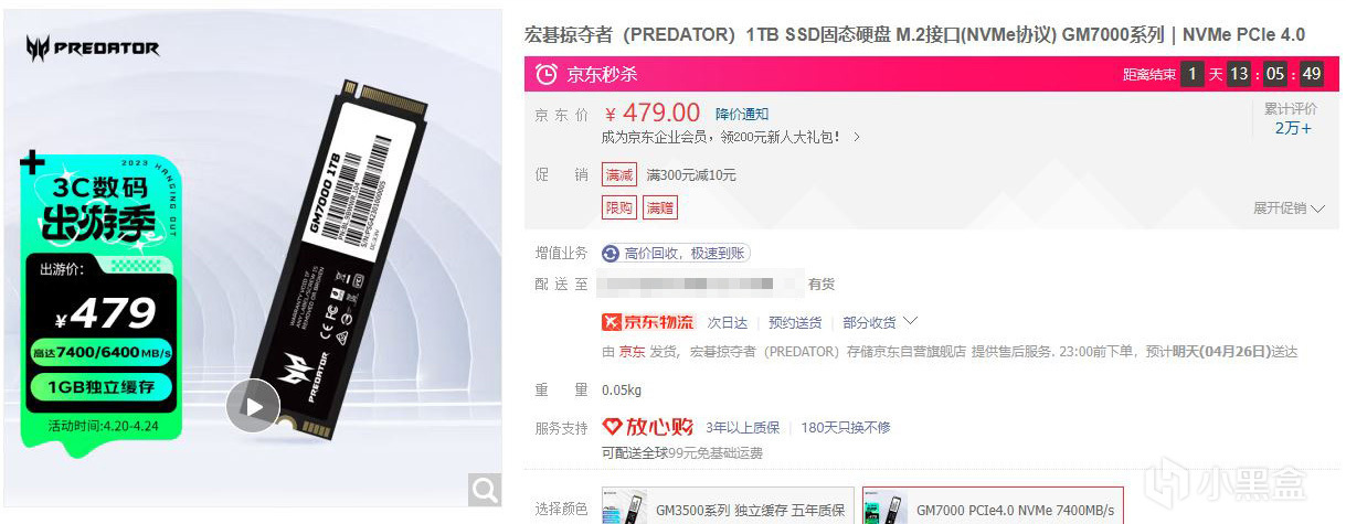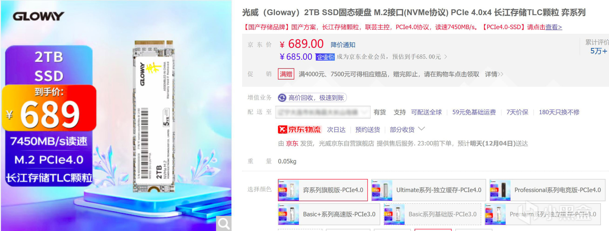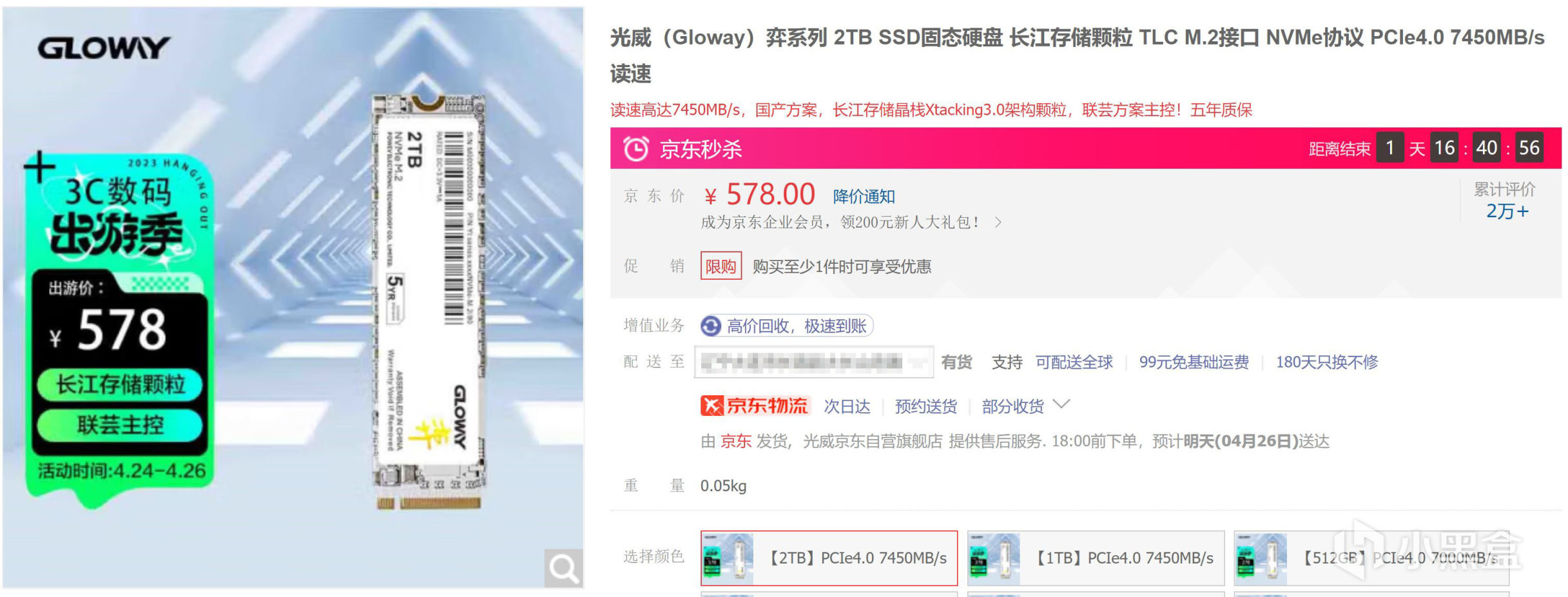 ▼4-5月京東是540塊,但如果是PDD平臺,2TB用劵大概450就能拿下。