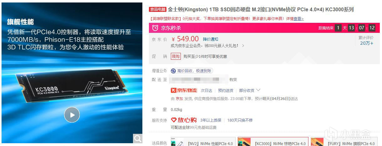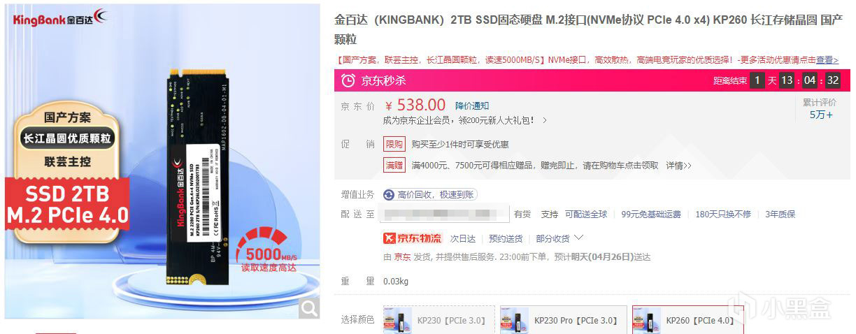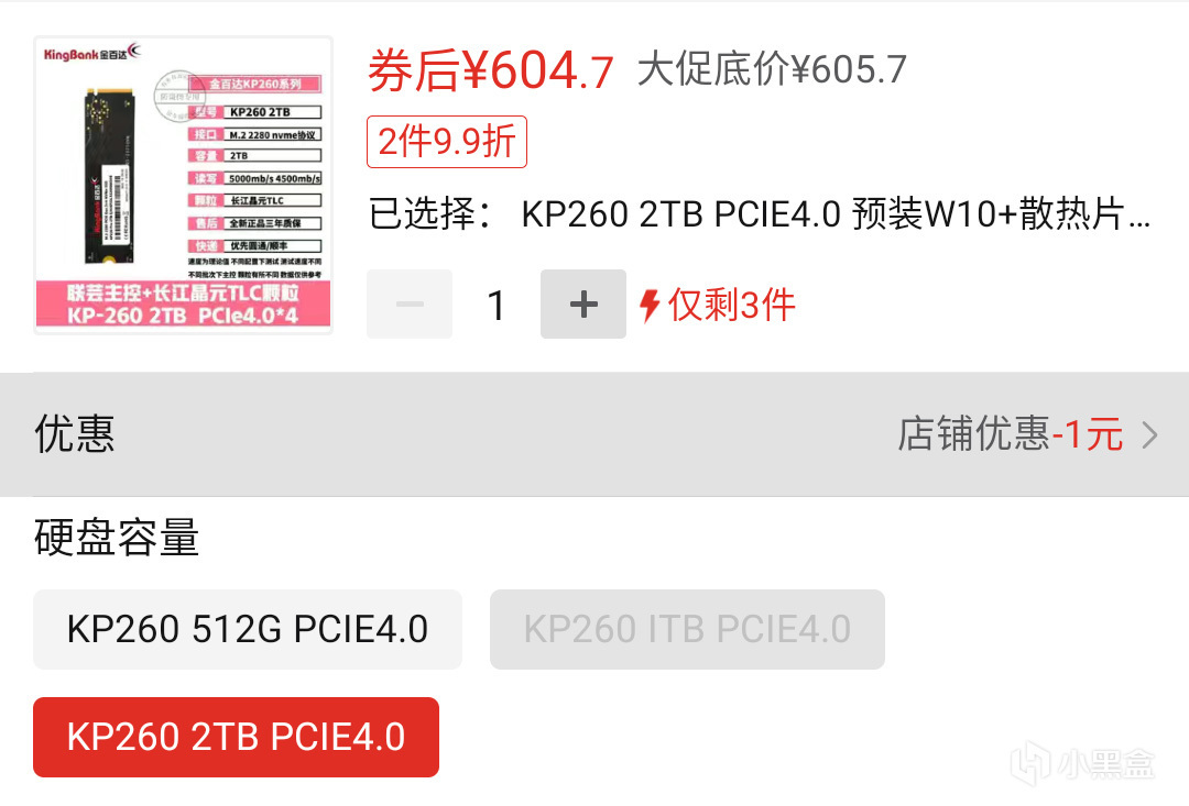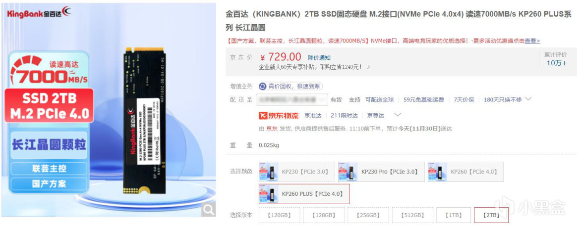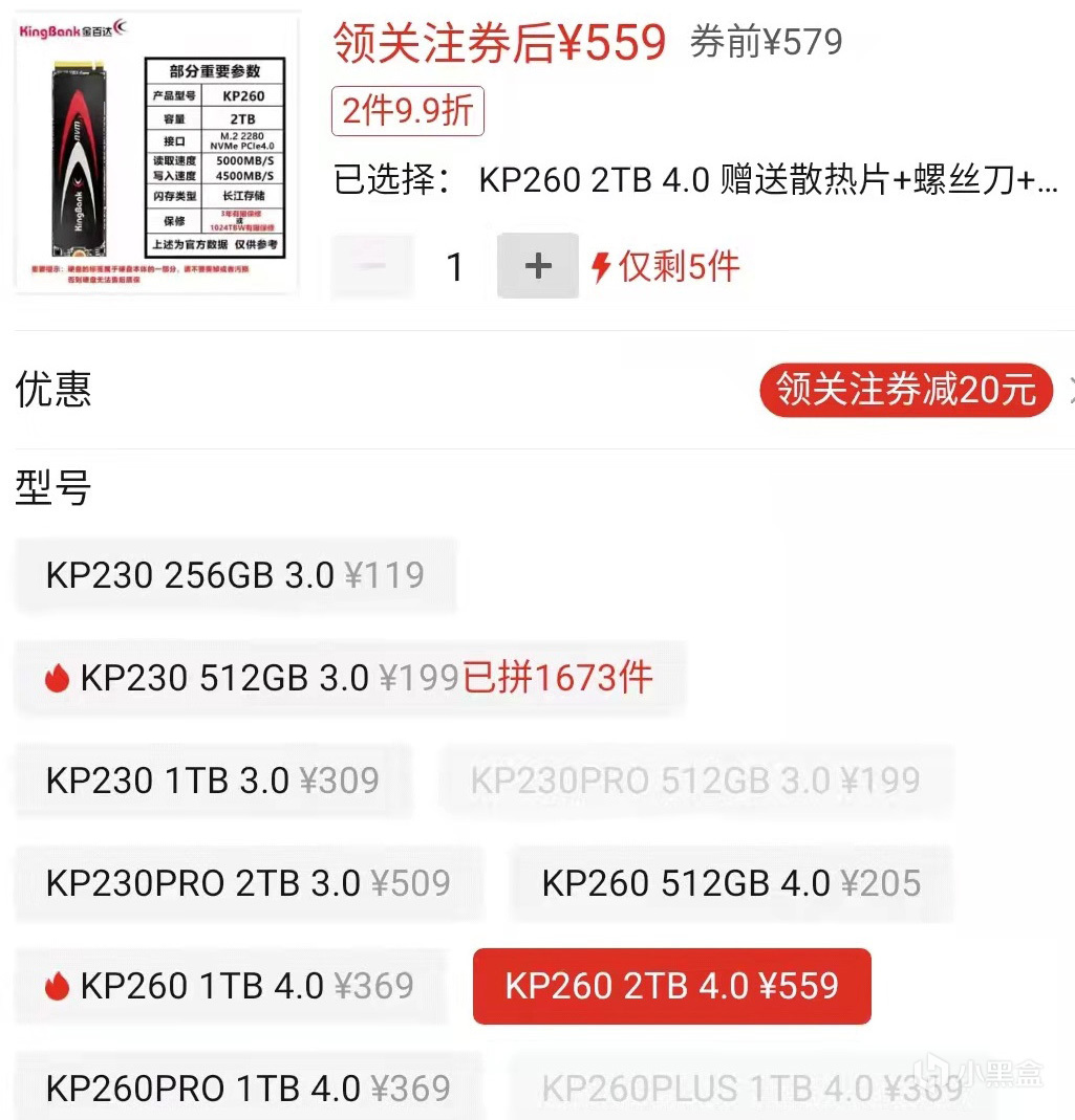 ▼現在JD自營店都是主推全速的KP260plus 2TB,價格相比競品也沒有了優勢。