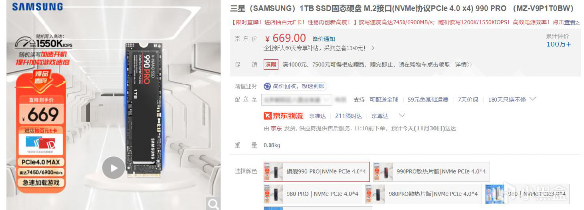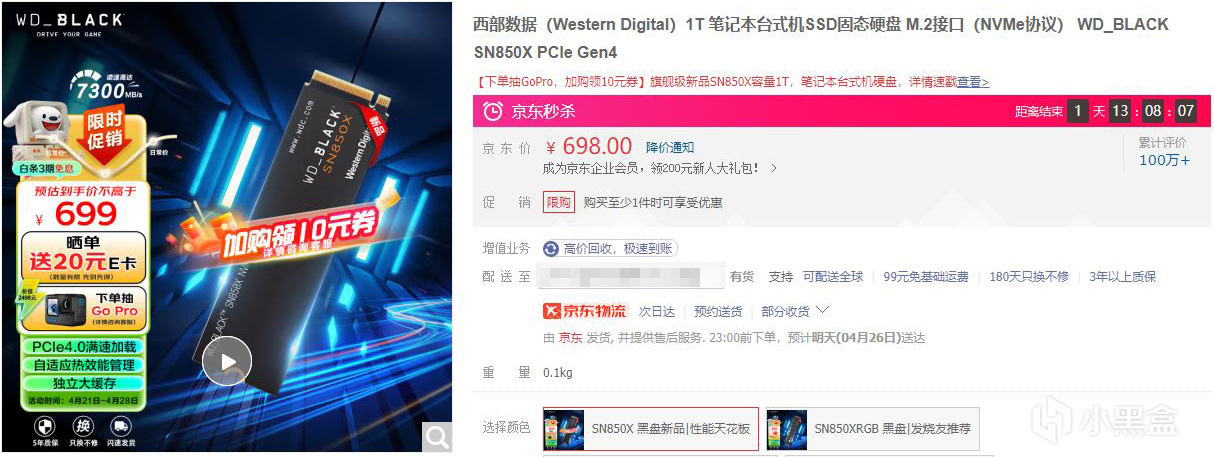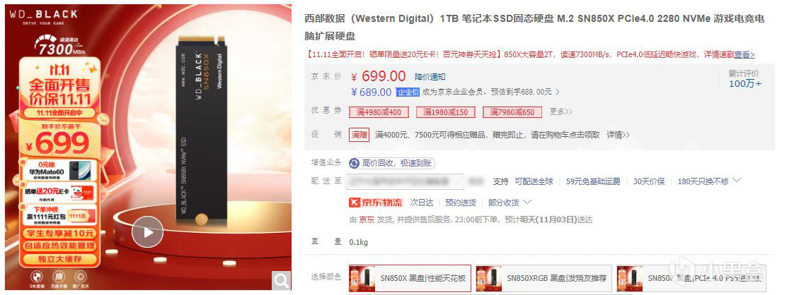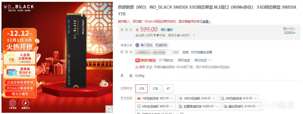 系統盤應用,推薦帶緩存的1TB PCle 4.0 SSD,西數SN850X雖然降價幅度比較大,但畢竟還有是比它便宜100塊的金屬頓和掠奪者,性能也是夠用的。