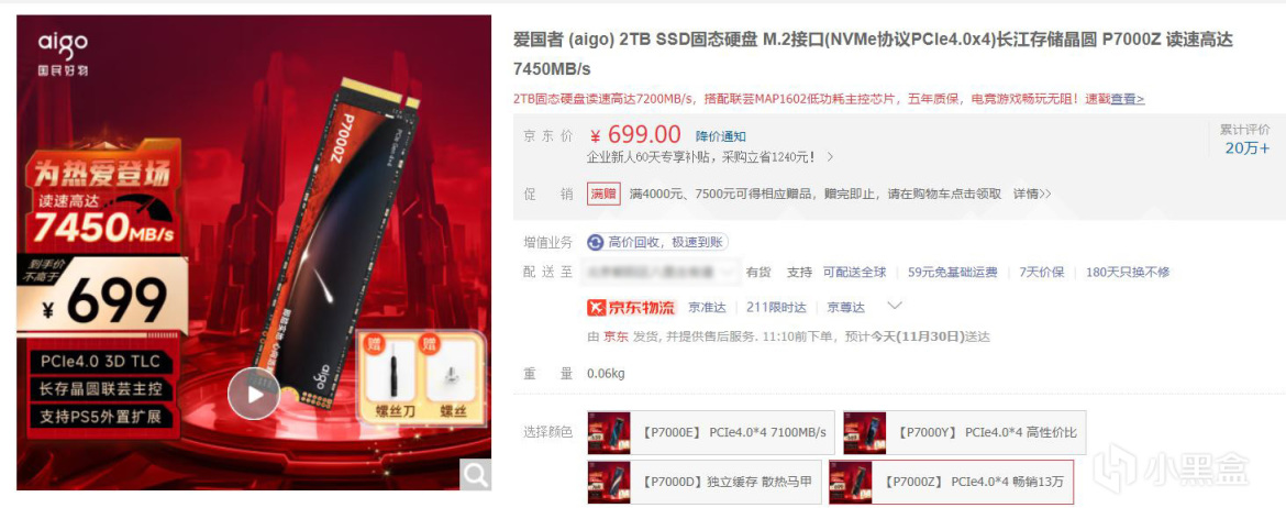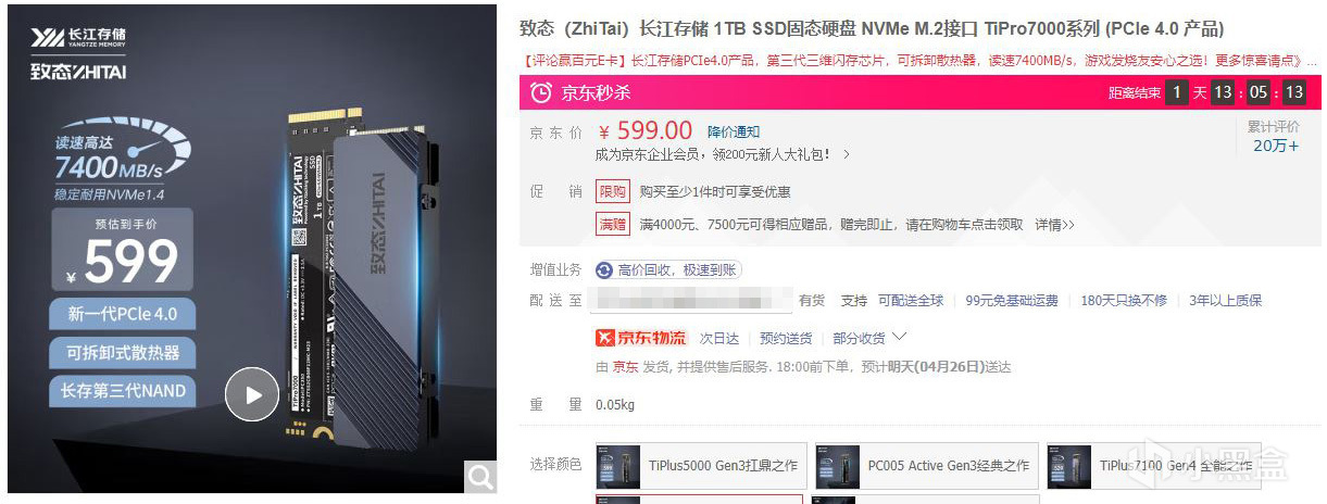 長存自家的品牌,真正的親兒子,所以肯定顆粒百分之百原廠原封,用最好的顆粒,英韌IG5236主控,達到第一梯隊的性能,也送了散熱馬甲,口碑也不錯,但價格也較高。