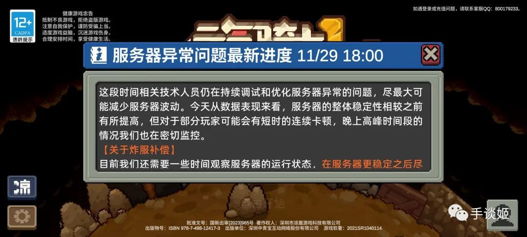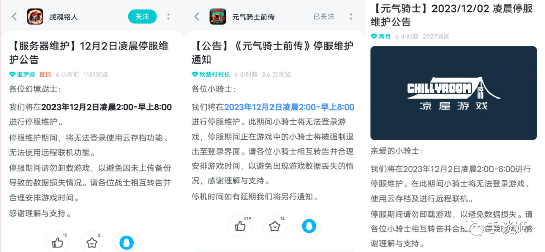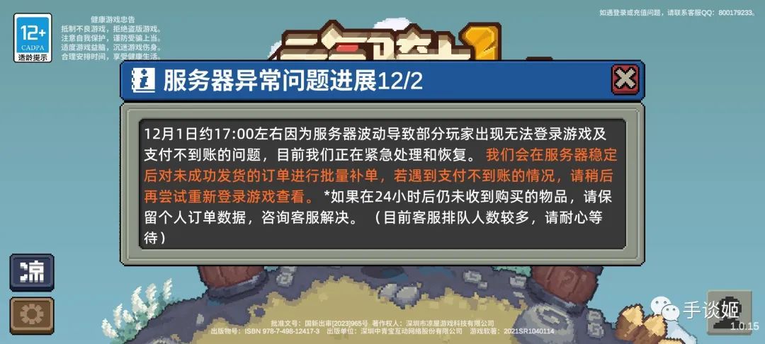 12月2号还停服修了一段时间,依然没完全修好。网友们还发现,那天凉屋的多款游戏停服,看来是大家公用一个服务器了?