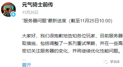官方号发布的公告,九成都是“我们在修了,在修了”。