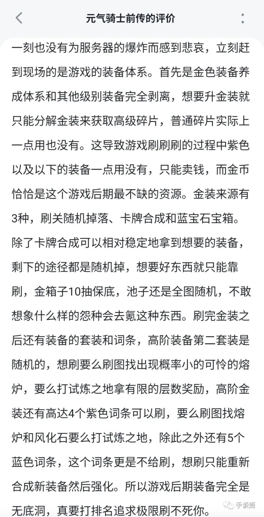 时隔6年,《元气骑士》的续作于2023年11月24日上线,名为《元气骑士前传》,依旧是像素风格,依旧是角色扮演,依旧要刷刷刷,与当年不同的是,《元气骑士前传》的开局非常糟糕。目前,其在好游快爆评分5.6,TapTap评分,4.4,B站评分更是只有4.3,说不定等姬文章发出去之后,还会进一步降低低低。