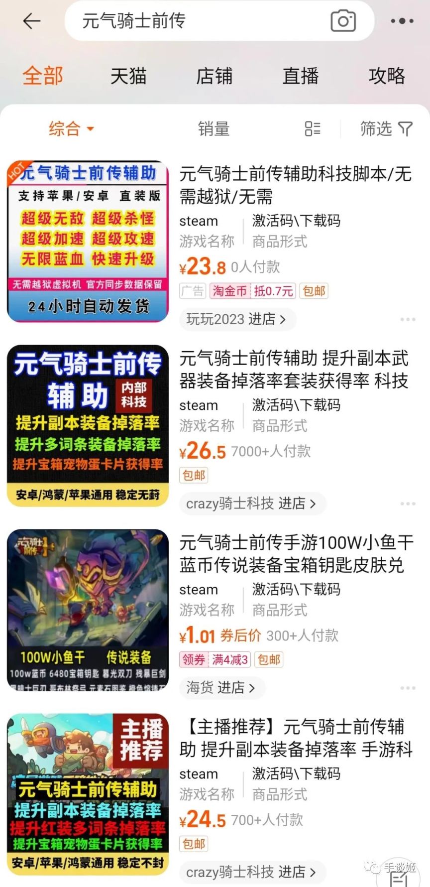 比如外挂,哪怕要求远程联网,外挂还是可以修改数值,你卡着动不了,别人直接将装备爆率拉满。官方目前已封禁一批人,不过手谈姬在某宝上随便一搜,就看到了大批卖挂店铺。
