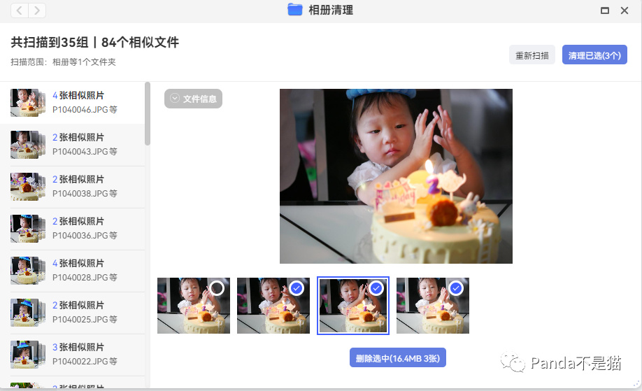 在拍照时,我们通常会选择在同一个地方采取多个角度拍摄相同的内容,以便在后期选择最好的照片。同时,极相册支持相似和重复照片的扫描功能。通过对比照片的哈希值,极相册可以找出重复或相似的照片。这样,你可以选择保留你认为最好的照片,而删除其他重复或相似的照片,从而节省NAS的存储空间,保持库存的整洁和节省空间的目标。
