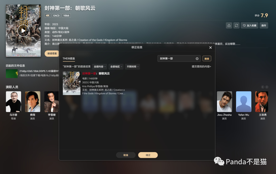 极影视的影视海报墙的识别精度快速精准,能将视频信息完全解析出来,再通过AI处理分类视频分辨率、视频格式、音频格式及影视详细信息和评分。如果实在有无法识别的文件,你也可以通过手动修正来修正信息。