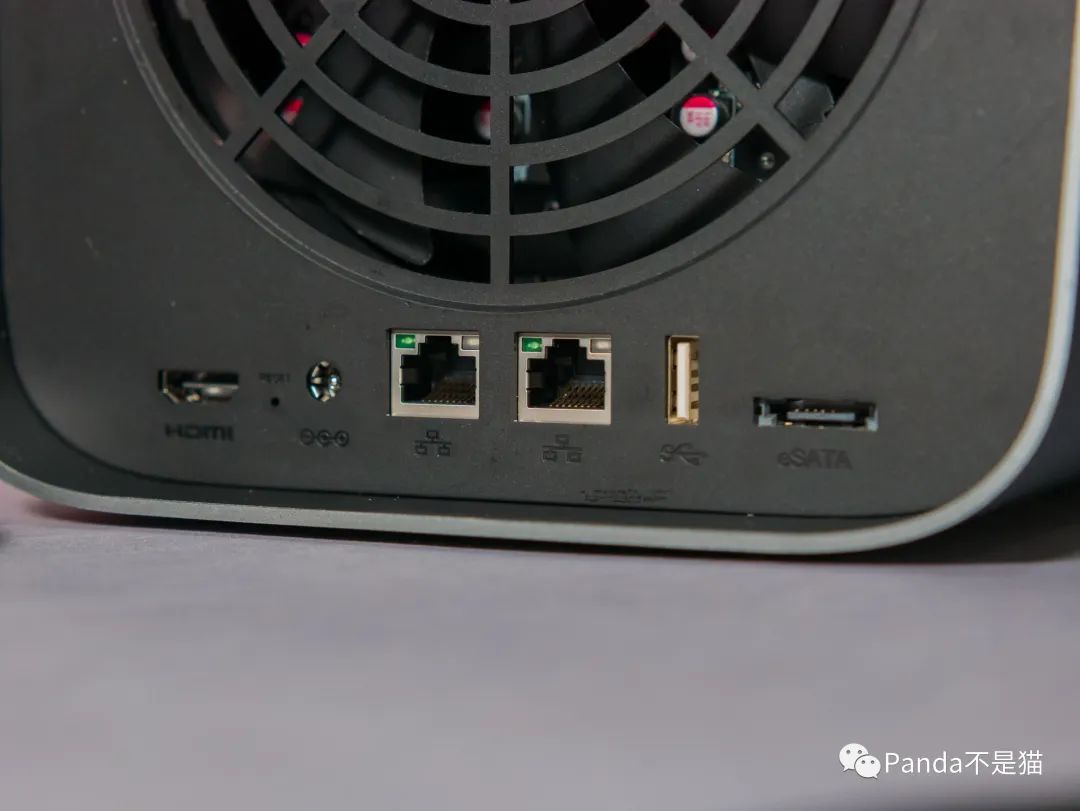 接口配置上,Z4Pro从左至右依次为:支持4K60hz的HDMI 2.0接口,DC电源口,两个2.5G可聚合的有线网口,USB接口和eSATA接口。这样的接口布局方便了用户的连接需求,无论是高清视频输出、有线网络连接还是外部存储设备的接入,都得到了有效的支持。